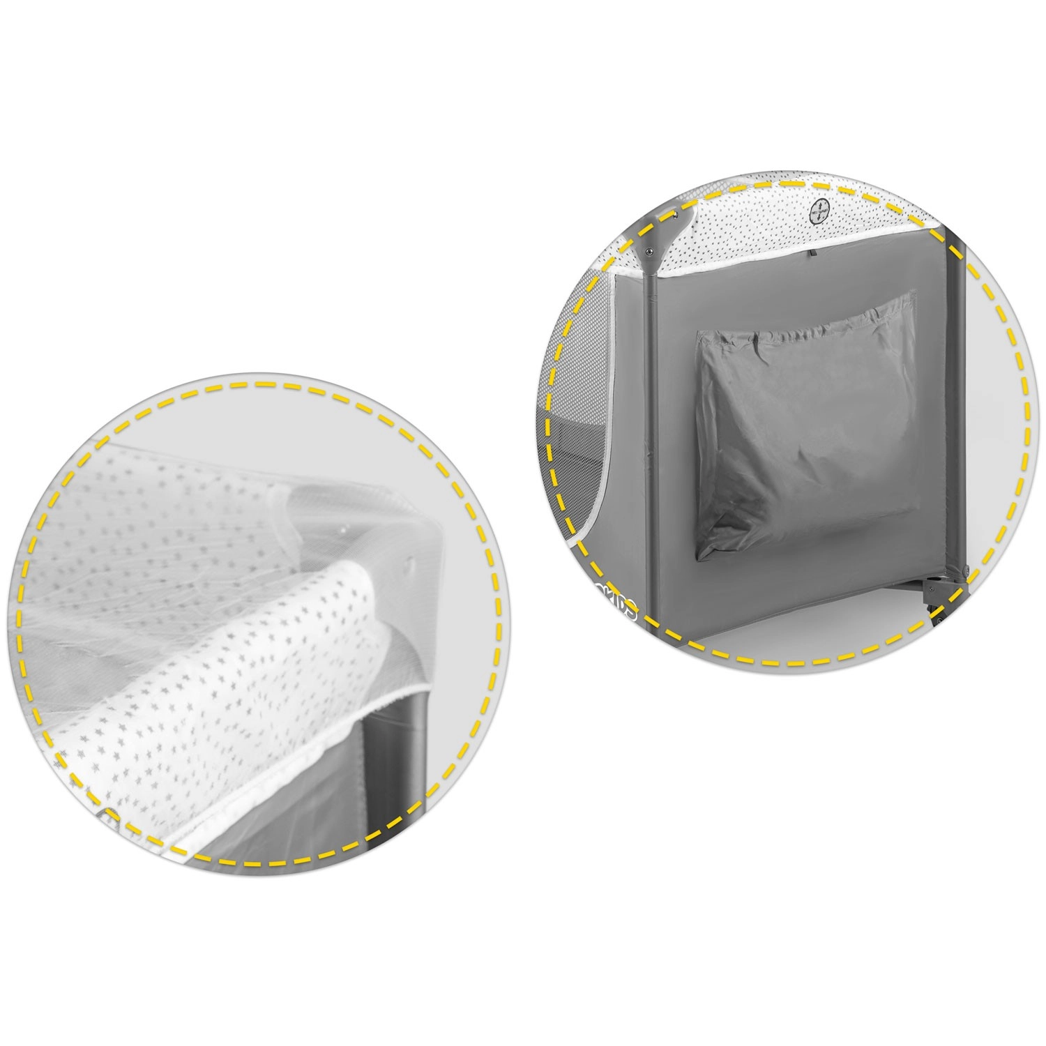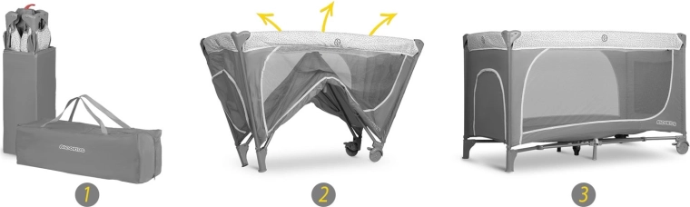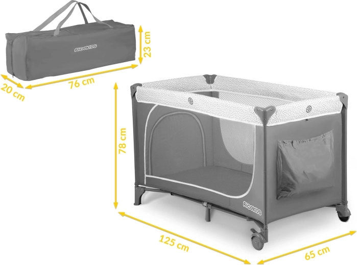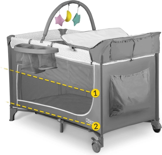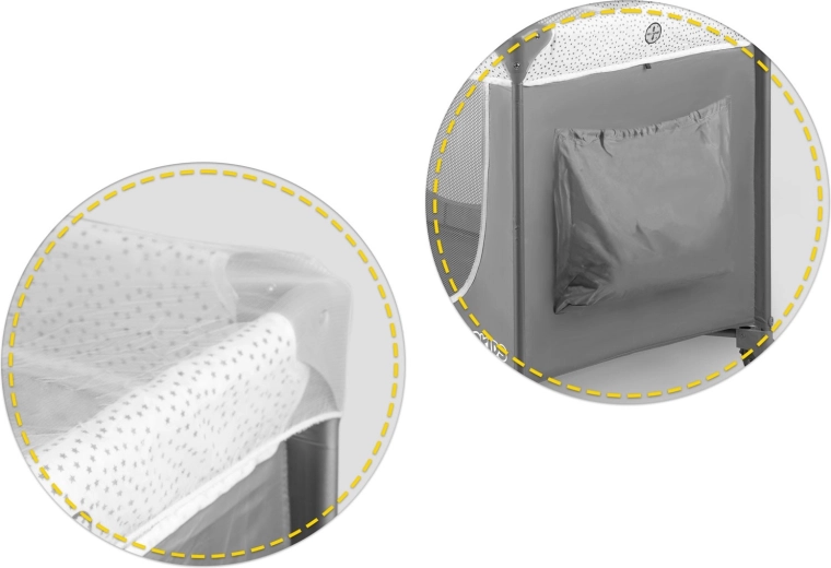 Ce lit de voyage au coloris gris élégant est conçu pour un confort et une sécurité maximaux pour l’enfant, ainsi que pour la praticité des parents. Grâce à deux niveaux de hauteur du sommier, vous l’adaptez facilement à l’âge et aux besoins de bébé. L’entrée latérale zippée facilite l’accès autonome des enfants plus grands, tandis que les côtés en maille respirante assurent une excellente circulation de l’air et une visibilité optimale.