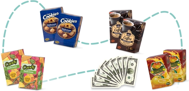 - Aliments en plastique (fruits, légumes, œufs) 19 pcs ; boîtes en carton 8 pcs ; billets 9 pcs ; siège pour poupée (poupée non incluse)