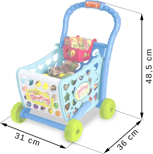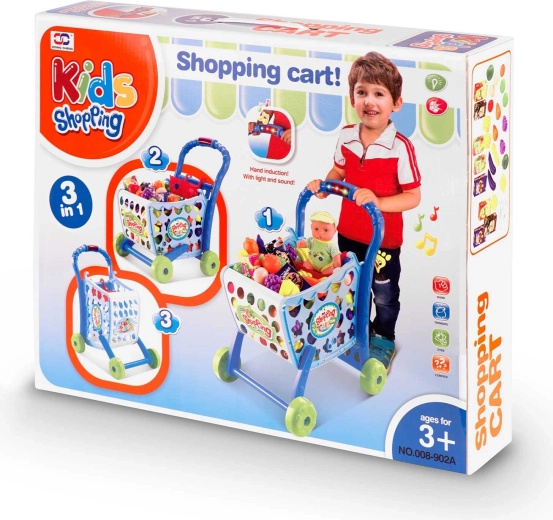 Coloré chariot de courses pour enfants RICOKIDS 3‑en‑1 est léger, spacieux et tient parfaitement en main. Grâce à trois options de montage, il fonctionne comme chariot et trotteur pousseur. Il comprend un riche ensemble d’accessoires (fruits, légumes, boîtes, billets) et une lumière LED avec son dans la poignée. Il favorise la motricité fine et le jeu social et est conforme aux normes européennes de sécurité EN.