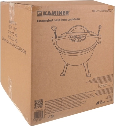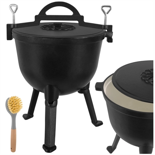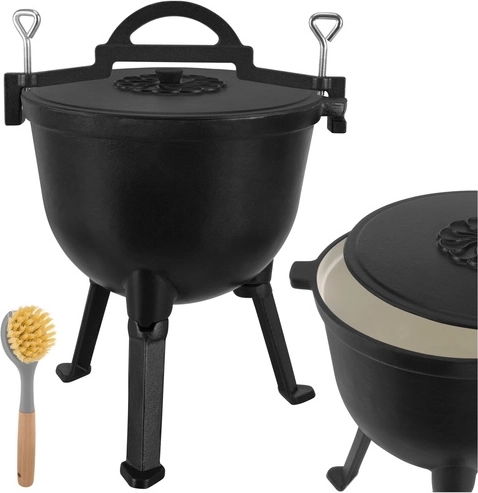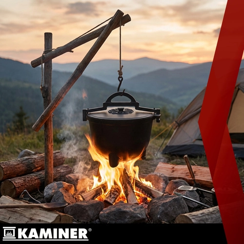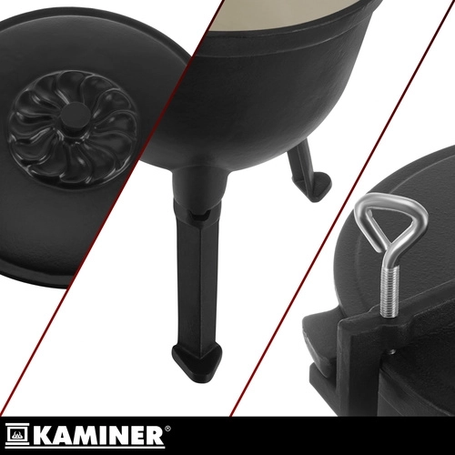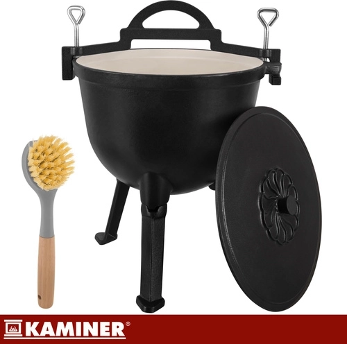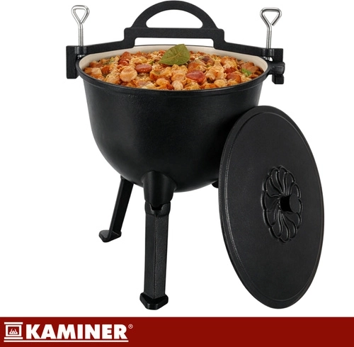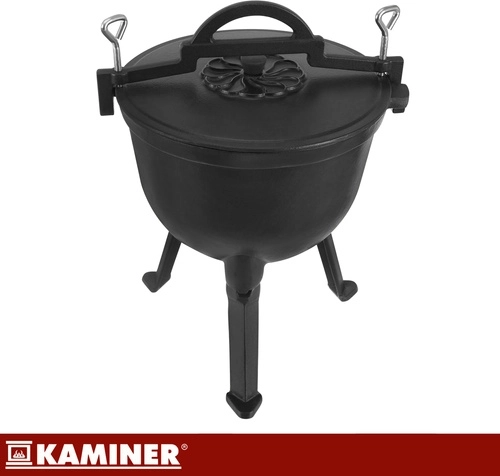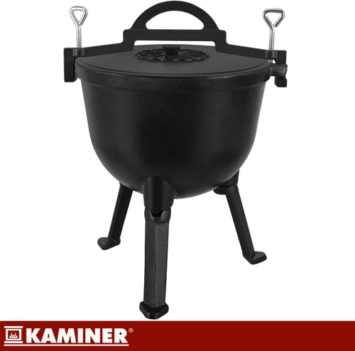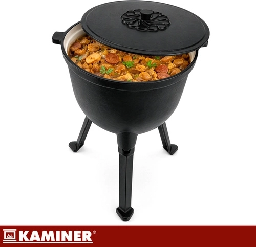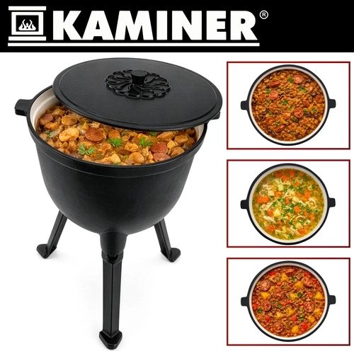 La construction robuste en fonte du chaudron KAMINER résiste aux hautes températures et à une utilisation prolongée. Les surfaces intérieures émaillées du chaudron et du couvercle simplifient l’entretien – sans nécessité de culottage ou d’huilage réguliers. Grâce à son volume de 10 l, vous préparez des portions généreuses pour toute la famille ou un groupe d’amis.