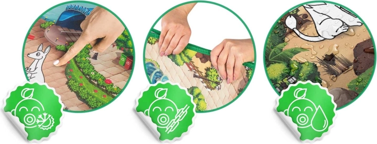 Grâce à la mousse EVA de qualité, le tapis est doux, résistant et imperméable, avec des bords gansés pour une plus longue durée de vie. Il assure une isolation thermique du sol et n’absorbe ni poussière ni acariens, ce qui le rend adapté aux personnes allergiques. Il se roule et se range facilement, et s’utilise à la maison dans la chambre, sur le carrelage, sur la terrasse ou lors d’un pique-nique.