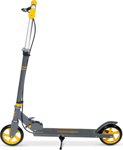 Mécanisme pliant, guidon réglable en hauteur, large plateau antidérapant, béquille