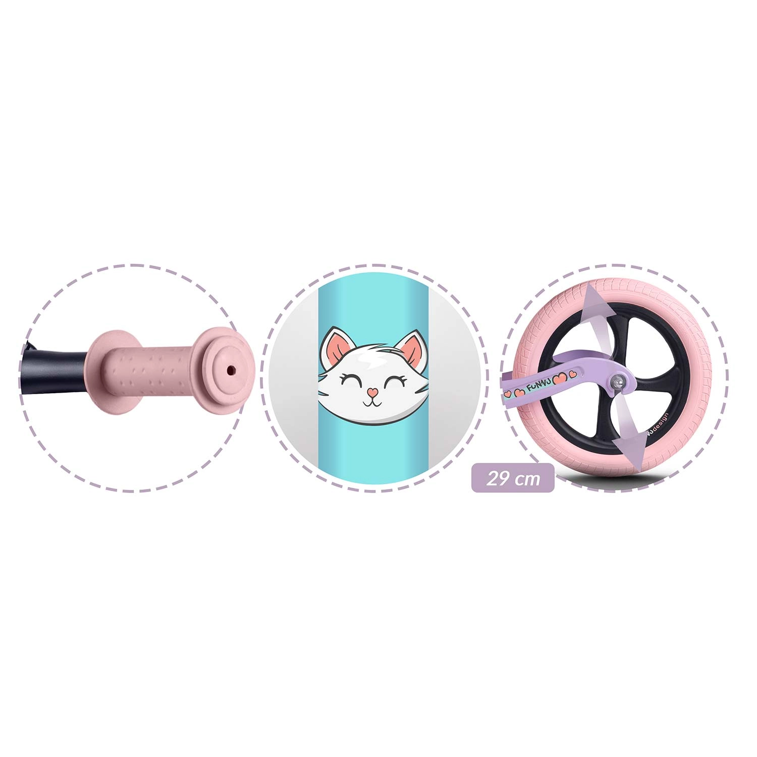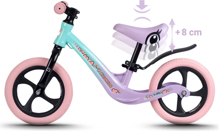 La draisienne Ricokids Funnu allie design moderne et fonctionnalité maximale. La construction en magnésium est à la fois solide et exceptionnellement légère, ce qui facilite la manipulation pour les enfants comme pour les parents. Les roues EVA 12'' sans chambre sont silencieuses, sans entretien et ne se percent pas – idéales sur l’asphalte, l’herbe et les terrains légers.