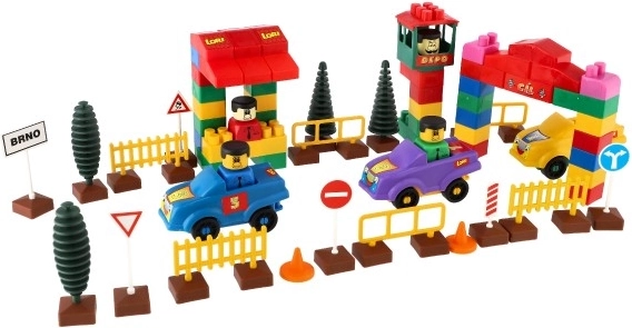 Le kit contient des éléments réalistes qui stimulent l'environnement de trafic pour jouer, tels que des voitures, des arbres et des panneaux de signalisation.