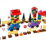 L'ensemble contient des blocs de plastique aux formes et tailles variées qui incitent à un jeu créatif et éducatif.