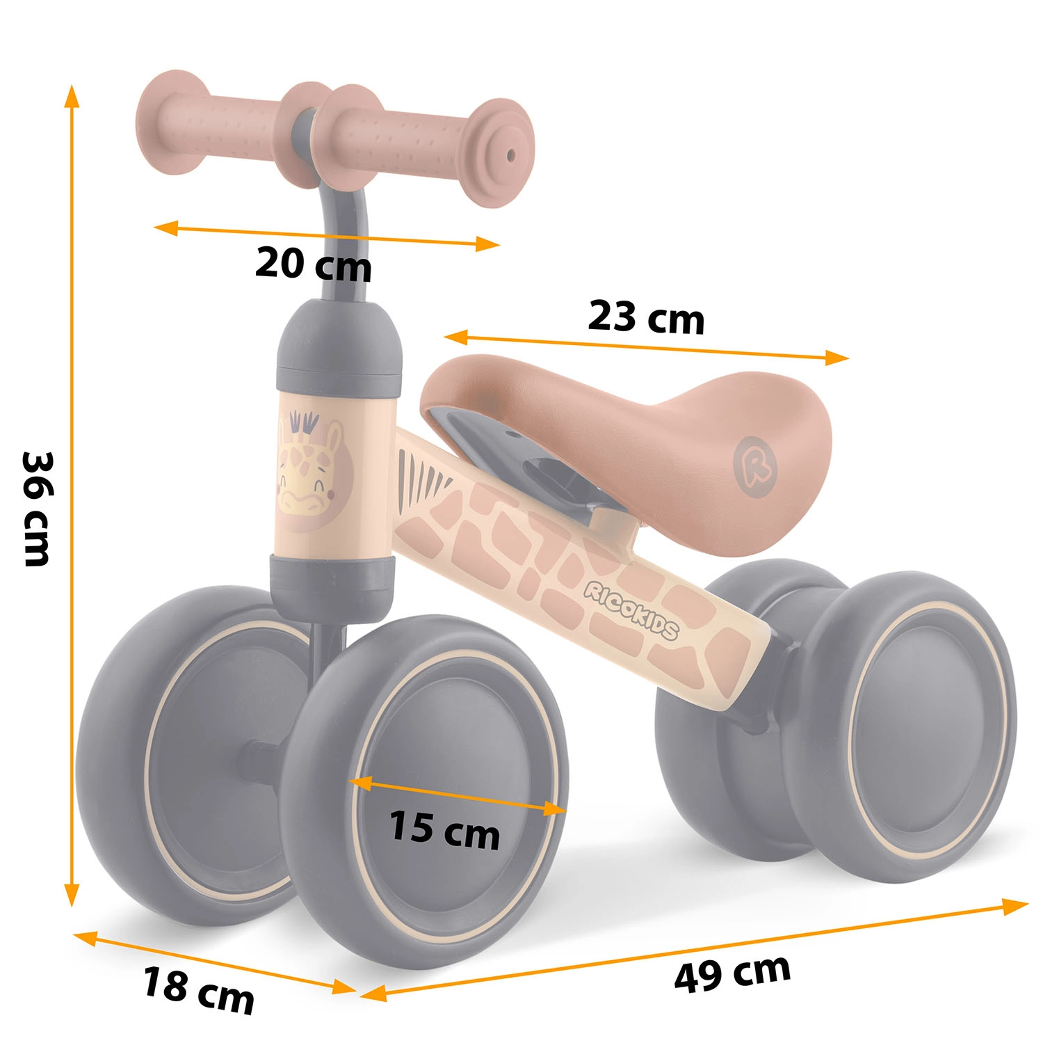 La draisienne pour tout-petits RICOKIDS est un choix idéal pour les premières sorties en autonomie. Grâce à sa position basse, les enfants gagnent en confiance et posent facilement les pieds au sol, tandis que les roues larges et stables aident à s’entraîner à l’équilibre en toute sécurité. Sa structure légère permet aux petits pilotes de soulever et transporter la draisienne eux-mêmes.