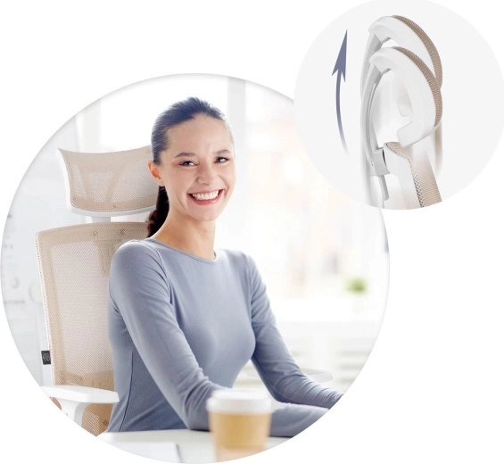 Le dossier en micro-maille fine assure une circulation d’air constante, tandis que la forme ergonomique avec soutien lombaire aide à maintenir une posture correcte pendant le travail.