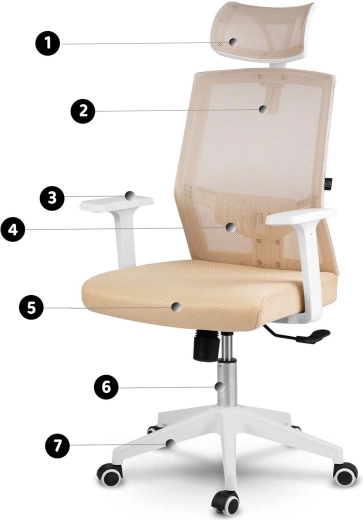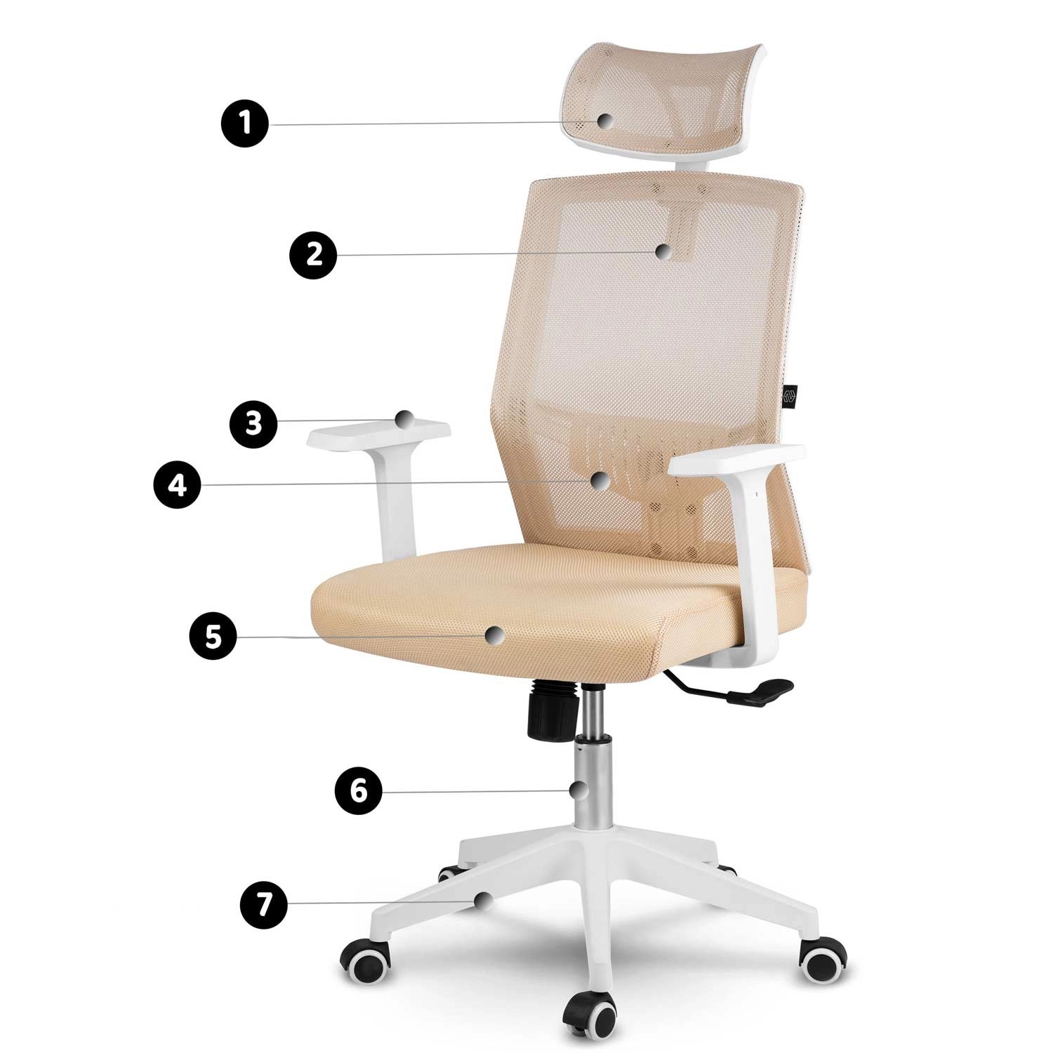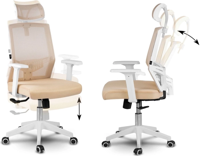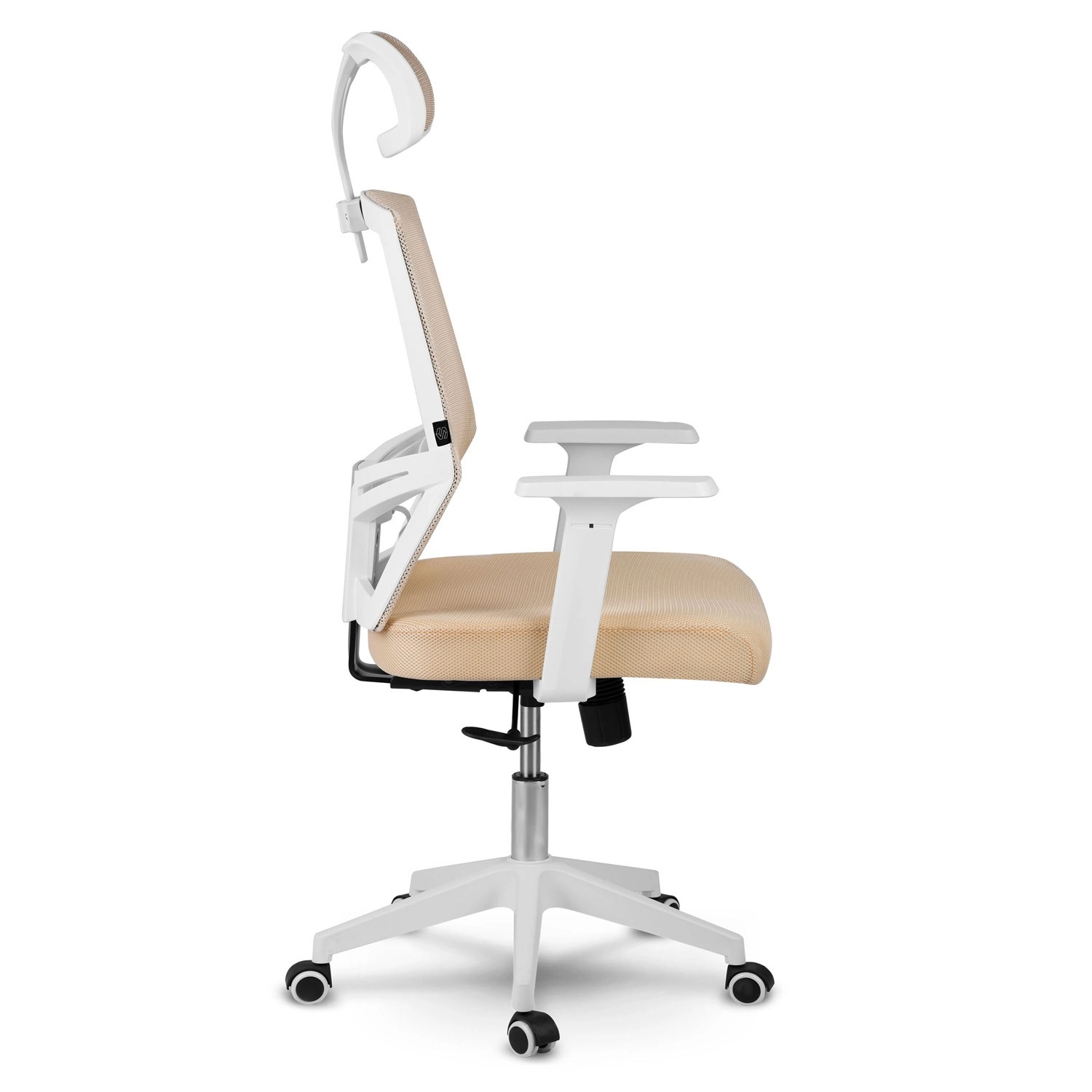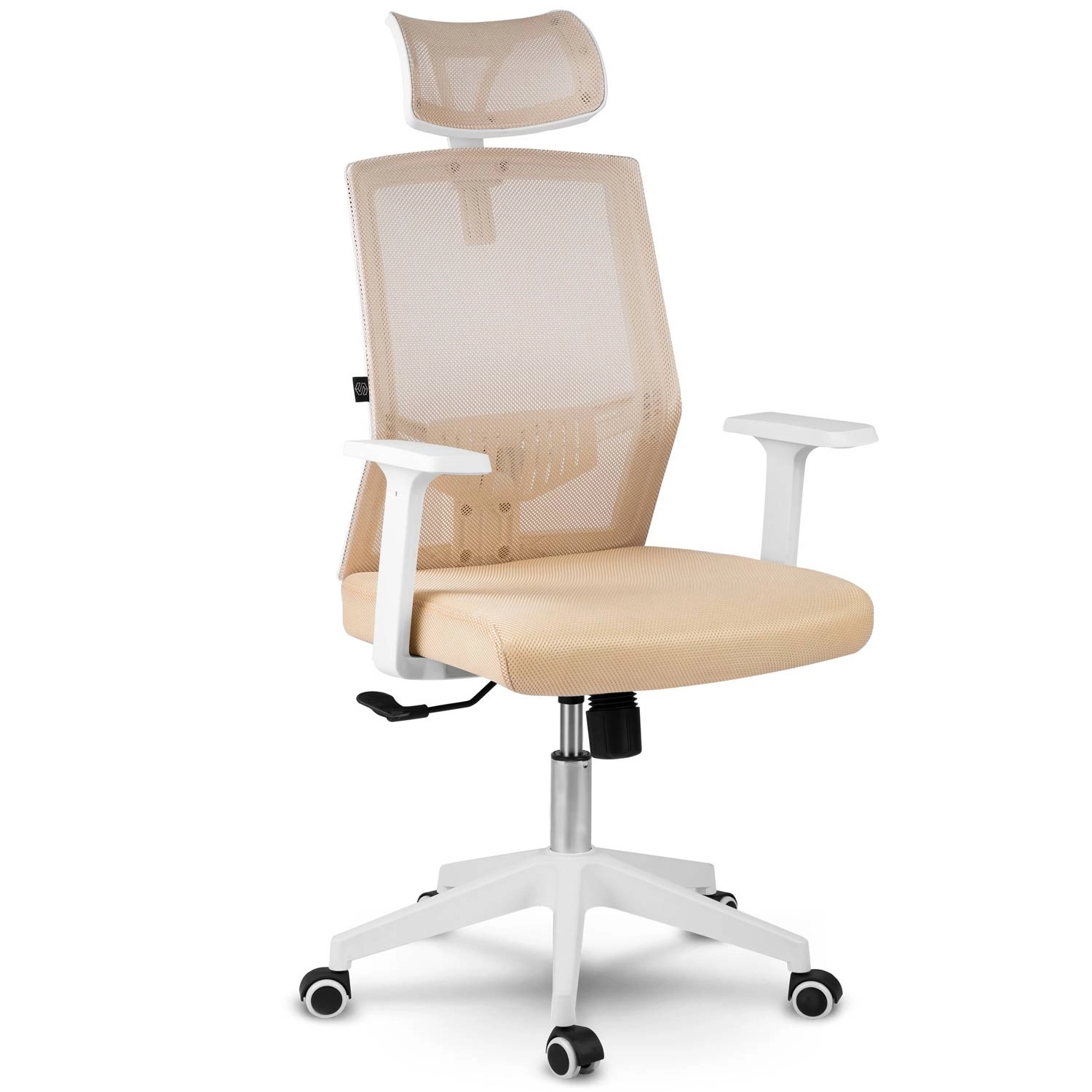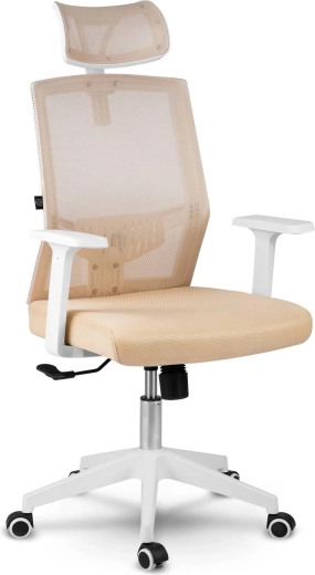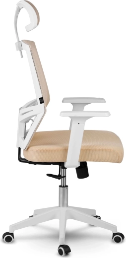 La chaise de bureau Sofotel Rotar beige, élégante et confortable, combine une micro-maille respirante, un design ergonomique avec soutien lombaire et un appui-tête réglable. Elle offre un réglage en hauteur en douceur, un mécanisme à bascule avec blocage et des roulettes silencieuses caoutchoutées qui ne rayent pas le sol.