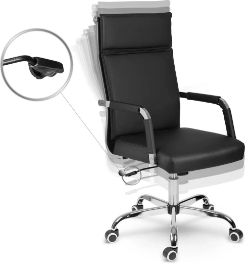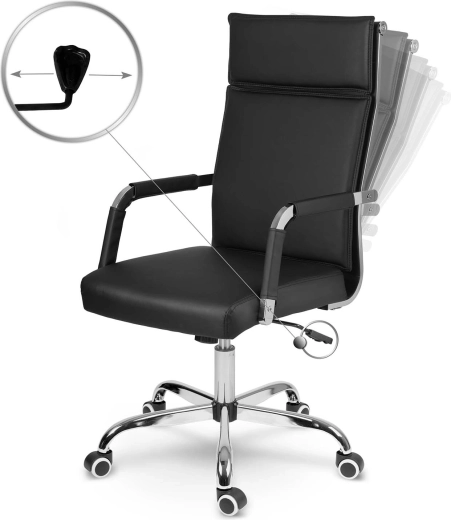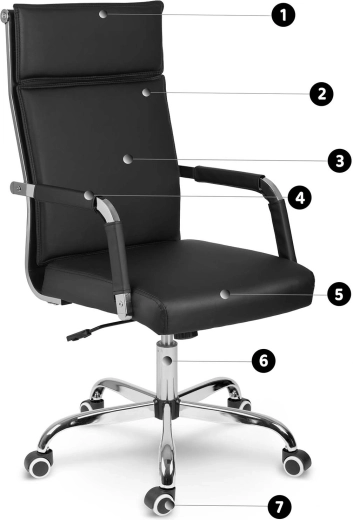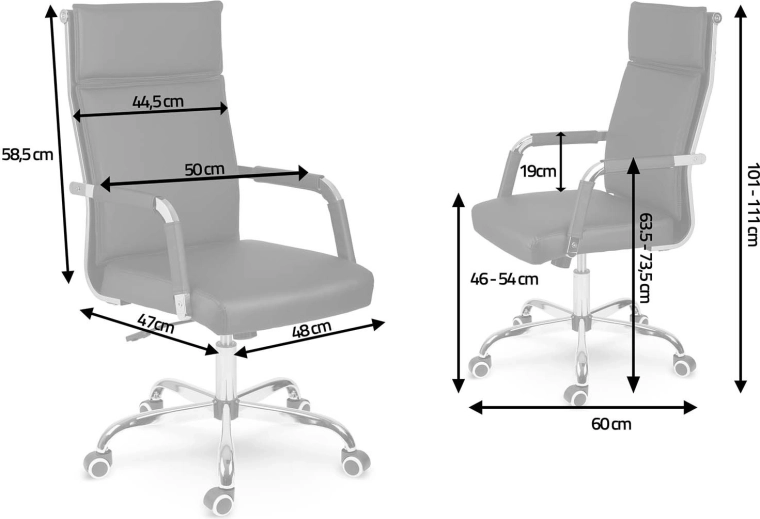 L’assise équipée d’un vérin à gaz permet le réglage de la hauteur selon votre bureau, tandis que le mécanisme de bascule avec option de blocage apporte de la détente pendant les journées exigeantes. La base chromée à cinq branches au design stable et les roulettes doubles caoutchoutées protègent le sol des rayures et assurent une glisse fluide.