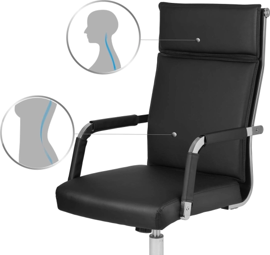 Découvrez le confort et le style avec la chaise de bureau Sofotel Koiba en élégante couleur noire. Grâce à son rembourrage double couche, son dossier haut avec appuie‑tête et son réglage en douceur de la hauteur, elle offre une excellente ergonomie pour le travail quotidien. La base chromée stable avec roulettes caoutchoutées protège le sol et permet des déplacements faciles dans le bureau.