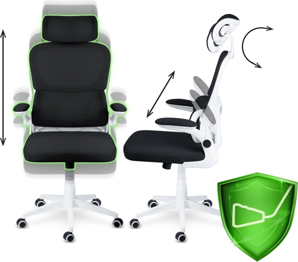 La zone lombaire profilée, la micro-maille respirante et la mousse élastique haute densité de l’assise favorisent une bonne posture et réduisent la fatigue lors des longues sessions assises.
