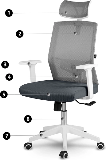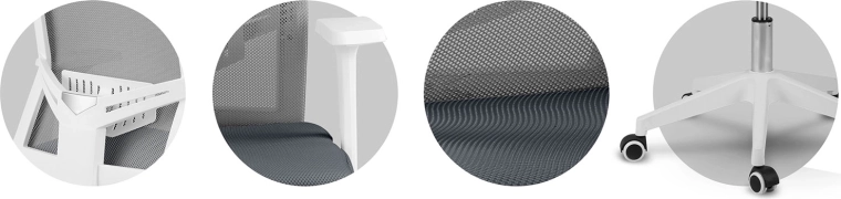 Le dossier en micro-maille résistante assure une ventilation optimale et, associé au soutien lombaire profilé, aide à maintenir une posture correcte même lors de longues périodes assises.