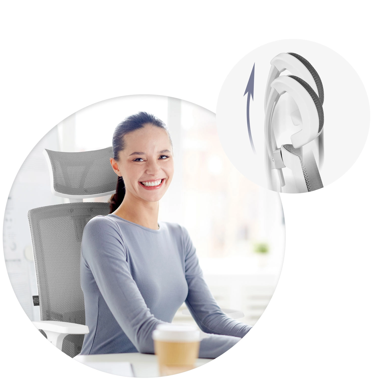 Ajustez facilement la position et la hauteur de l’appuie‑tête pour soulager la nuque et améliorer le confort au travail comme au repos.