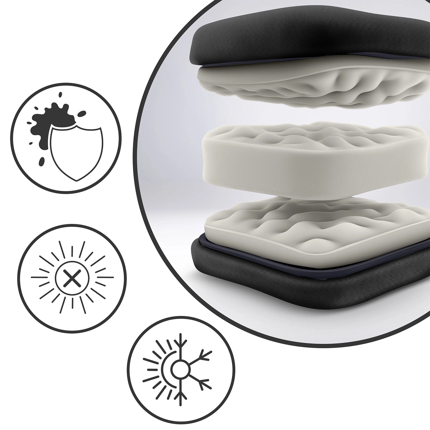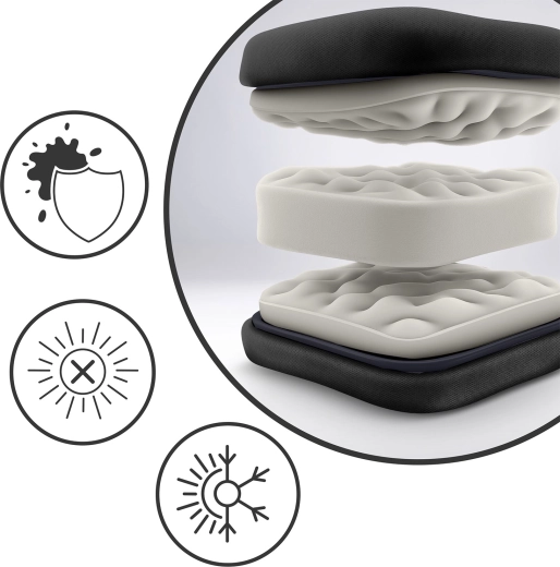 Le coussin matelassé, densément rembourré et en tissu agréable au toucher, procure un soutien souple et réactif sur toute la longueur du corps et résiste à l’affaissement même en cas d’utilisation fréquente.