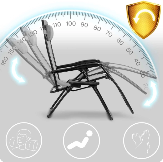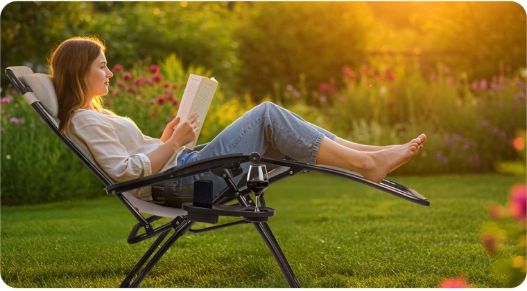 Réglez l’inclinaison de façon à garder les jambes au niveau du cœur – vous favorisez la circulation sanguine, soulagez le dos et profitez d’une relaxation profonde à la maison comme en extérieur.