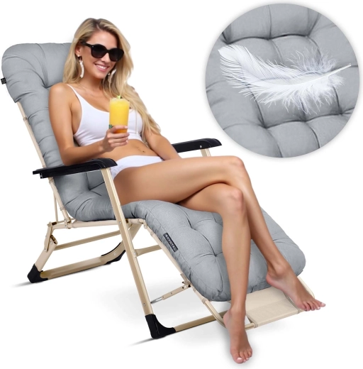 Chaise longue de jardin pliante avec coussin Sofotel ChillWell, gris clair