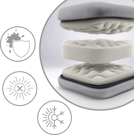 - Confort maximal : coussin moelleux et souple avec appuie‑tête pour le soutien de la nuque.