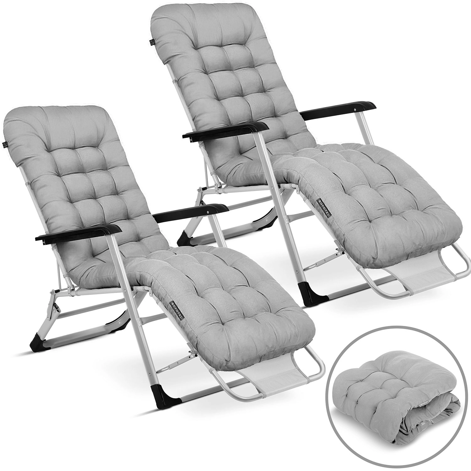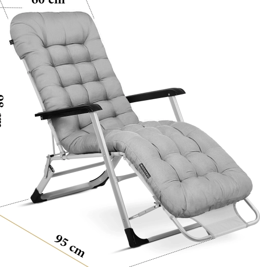 La structure métallique robuste avec embouts antidérapants assure stabilité, résistance et longévité. Le revêtement en Texline résiste aux UV, aux variations de température et se nettoie facilement. Les accoudoirs en plastique sont solides et agréables au toucher. Une fois pliées, les chaises longues prennent un minimum de place ; vous pouvez donc les emporter en vacances ou les ranger pour l’hiver sans difficulté.