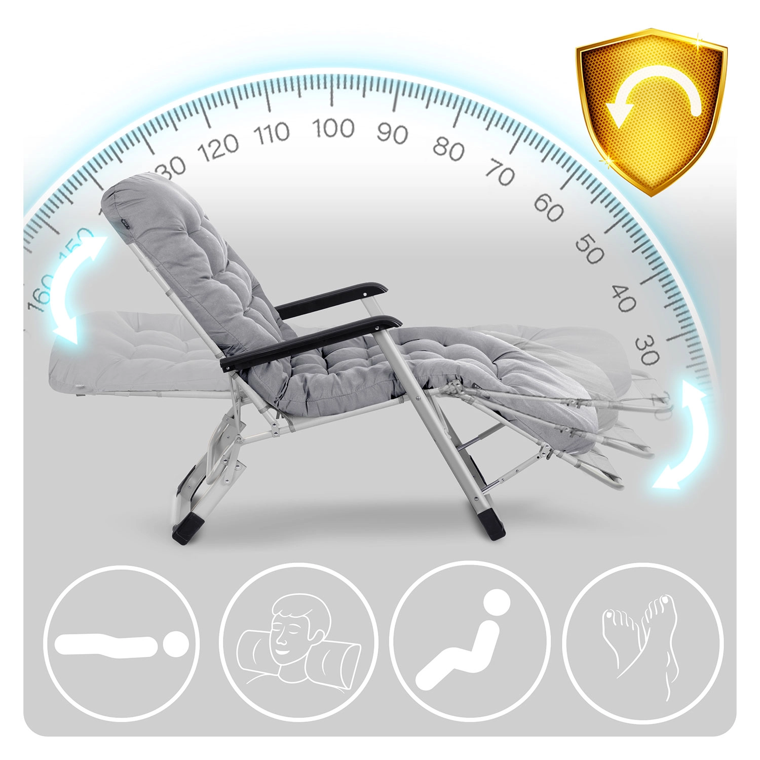 Le dossier réglable et le repose‑pieds à 3 niveaux permettent de trouver la position idéale – de la position assise à l’allongement complet pour une détente maximale.