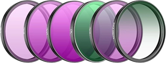 - Kit complet de 6 filtres : ND8/ND16/ND32/ND64, CPL, Black Mist 1/4