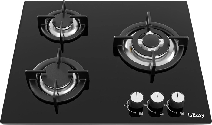 Le verre trempé noir se nettoie facilement et s’intègre parfaitement aux cuisines contemporaines. Les grilles en fonte maintiennent les récipients stables même lors de cuissons intensives, tandis que les boutons mécaniques avec allumage intégré assurent un démarrage de flamme rapide et pratique.