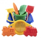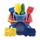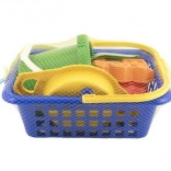 Ludique, l'ensemble de sable pour enfants avec panier pratique contient tout le nécessaire pour s'amuser à la plage comme au bac à sable : seau, pelle, bêche, râteau, tamis et 2 moules. Le plastique léger et résistant convient aux enfants dès 12 mois et favorise la motricité fine et l'imagination.