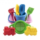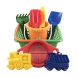 Le coffret contient un seau, une pelle, une bêche, un râteau, un tamis et 2 moules. Les enfants peuvent creuser, tamiser, ramasser et façonner des formes, et développer pleinement leur créativité en jouant dans le sable.