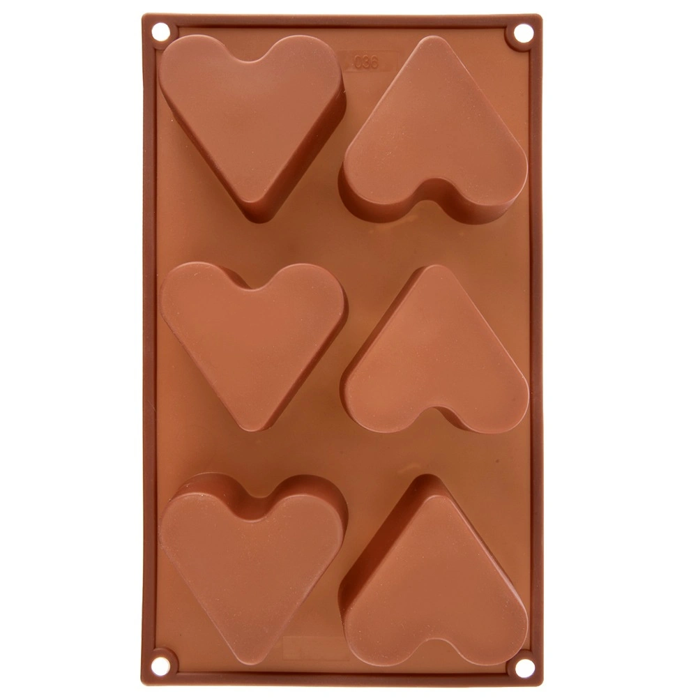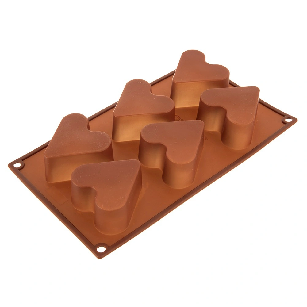 Moule en silicone pratique pour 6 pièces en forme de cœur, idéal pour biscuits, desserts et muffins faits maison. Grâce au silicone souple, il est antiadhésif, facile à démouler et résistant aux températures de -40 °C à +200 °C. Compatible four, micro-ondes, congélateur et lave-vaisselle.