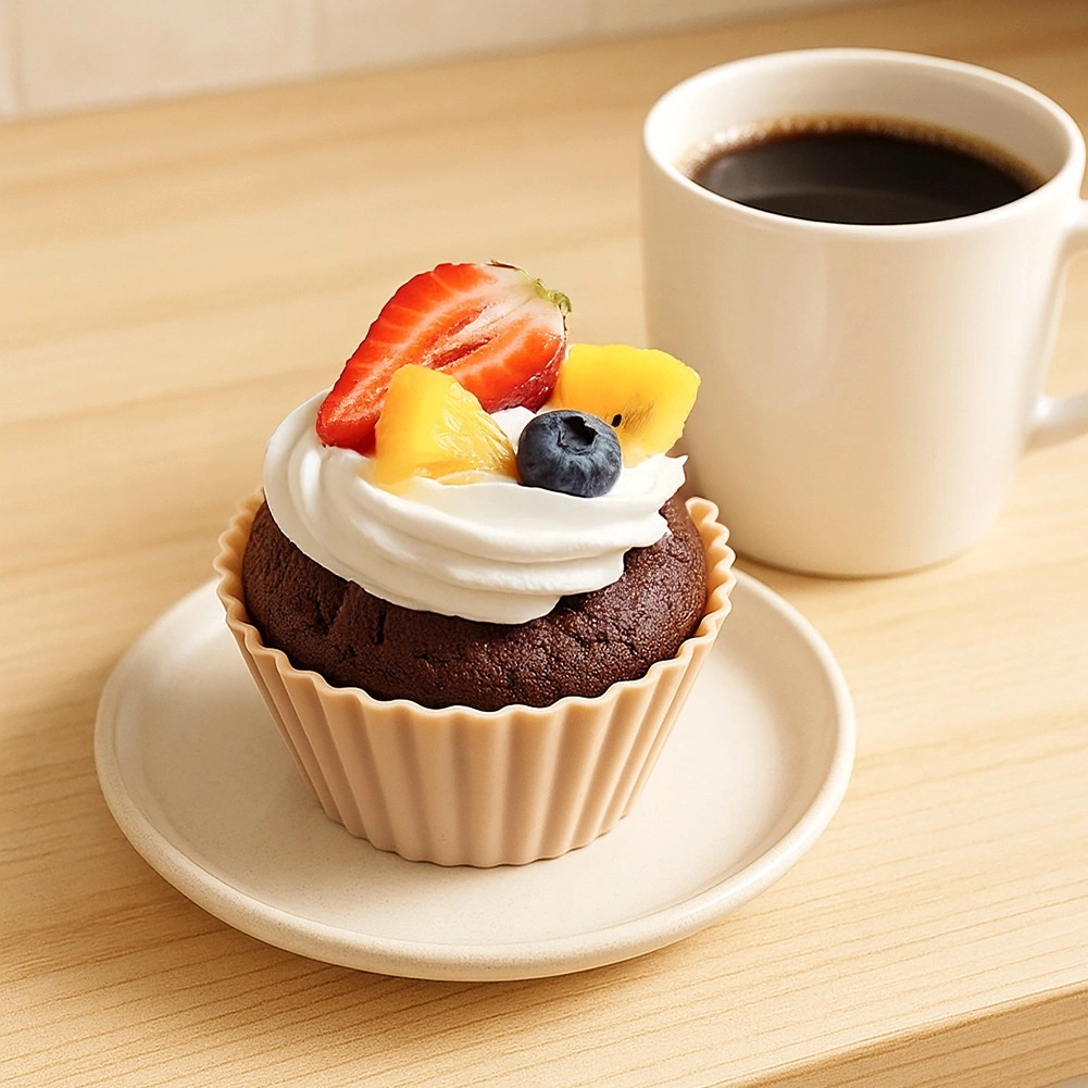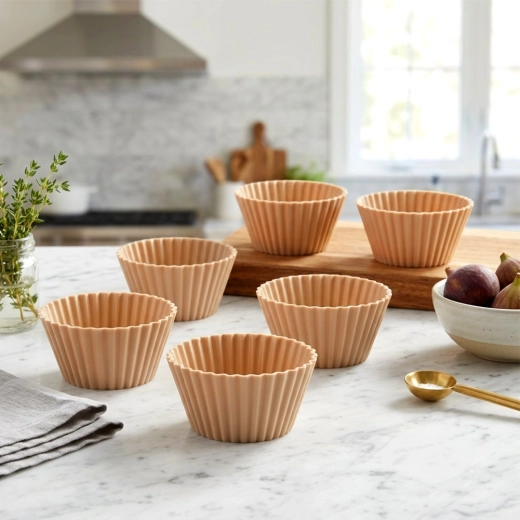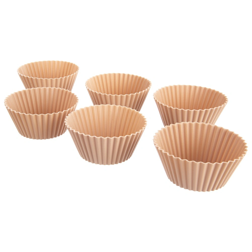 Le set comprend 6 moules en silicone de haute qualité avec un diamètre supérieur de 6,5 cm, un diamètre de base de 5 cm et une hauteur de 3 cm. Les bords cannelés créent un aspect esthétique et garantissent une forme parfaite de muffin. Le silicone conduit très bien la chaleur, de sorte que la pâte cuit uniformément, sans besoin de graisser ni de fariner.