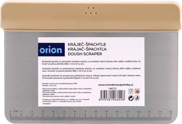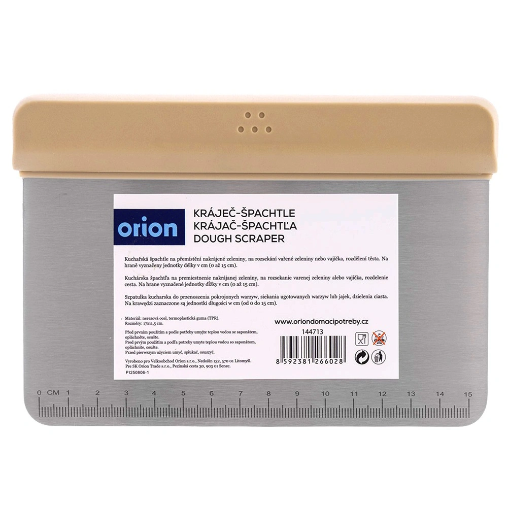 Cette corne/spatule universelle combine les fonctions de coupe-pâte, de soulève-pièces et de raclette. Du lissage des crèmes au portionnement de la pâte, la lame en inox avec échelle graduée permet un travail rapide et précis, sans outils supplémentaires. Convient aussi pour hacher des noix ou des légumes.