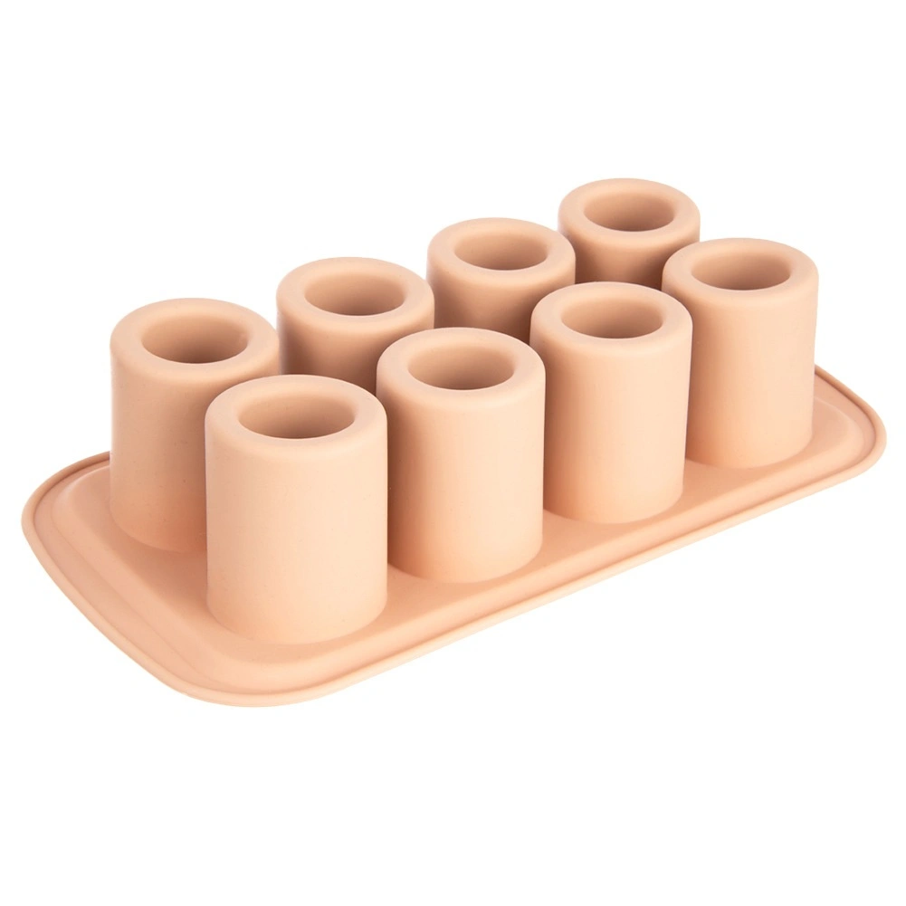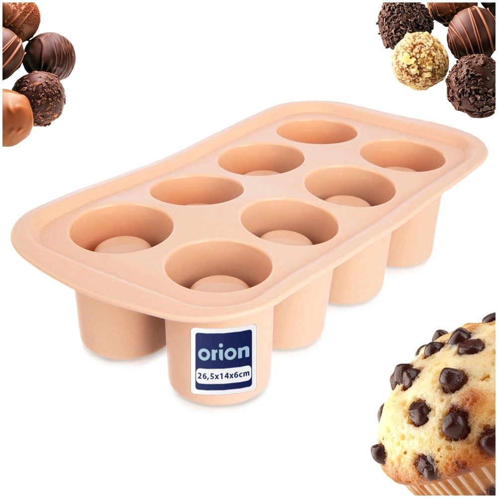Moule en silicone pratique pour la cuisson et la congélation, idéal pour préparer des desserts spectaculaires, des mini gâteaux et des biscuits avec un centre creux pour crèmes, mousses ou liqueurs. Il offre 8 cavités de 4,5 cm de diamètre et 6 cm de hauteur, est flexible, antiadhésif et résistant de −40 °C à +200 °C. Convient au four, micro-ondes, réfrigérateur et congélateur et peut être lavé au lave-vaisselle.