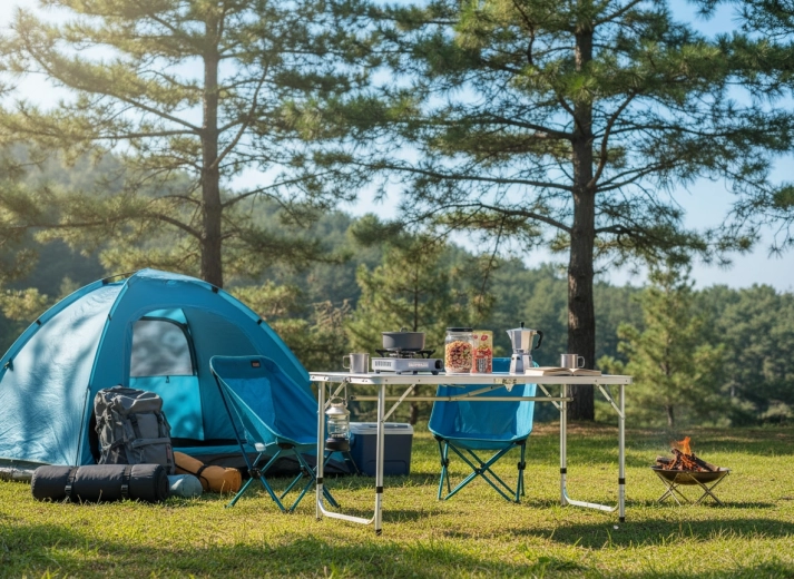 La combinaison d’un cadre en acier et d’un plateau MDF assure stabilité, durabilité et entretien facile — idéale pour le jardin, le camping et les pique-niques.