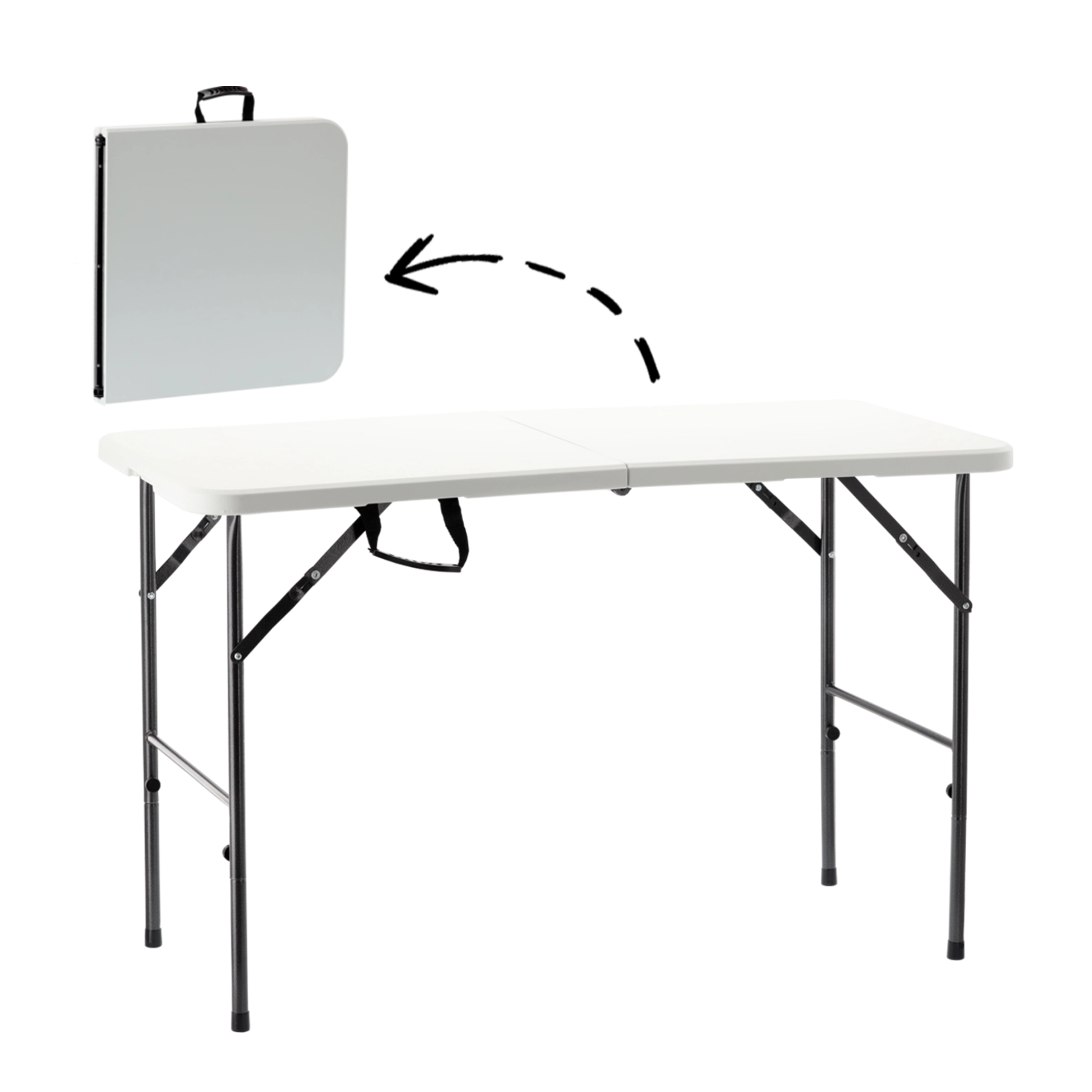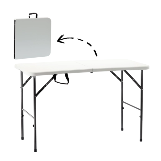 La table pliante universelle 120 × 60 × 74 cm est idéale pour les fêtes de famille, barbecues, camping et événements promotionnels. Le plateau résistant en HDPE et le cadre en acier robuste avec verrou assurent une grande stabilité et une longue durée de vie en intérieur comme en extérieur.
