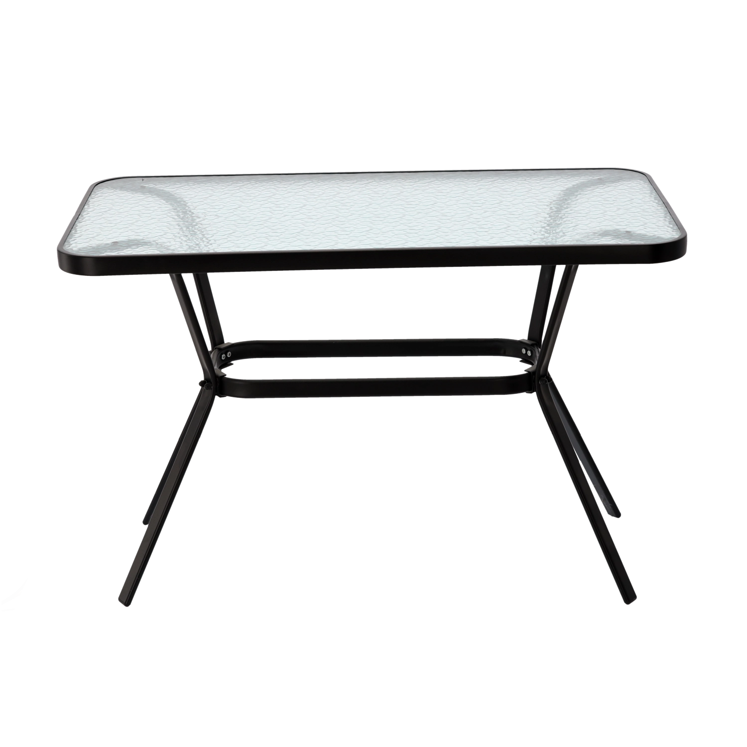 Le cadre en acier peint résiste aux intempéries et, grâce à la traverse de renfort entre les pieds, la table reste solide et stable même sous une charge plus importante.