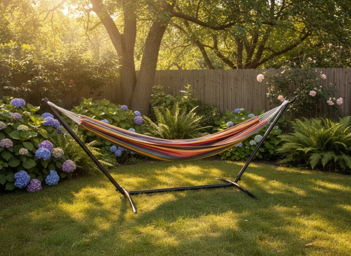 Grâce à ses crochets universels, le support est compatible avec différents types de hamacs et, grâce à son démontage aisé, convient aussi à un usage saisonnier et au stockage. Un choix idéal pour le jardin, la terrasse, le balcon ou au bord du lac – partout où vous voulez votre coin de tranquillité.