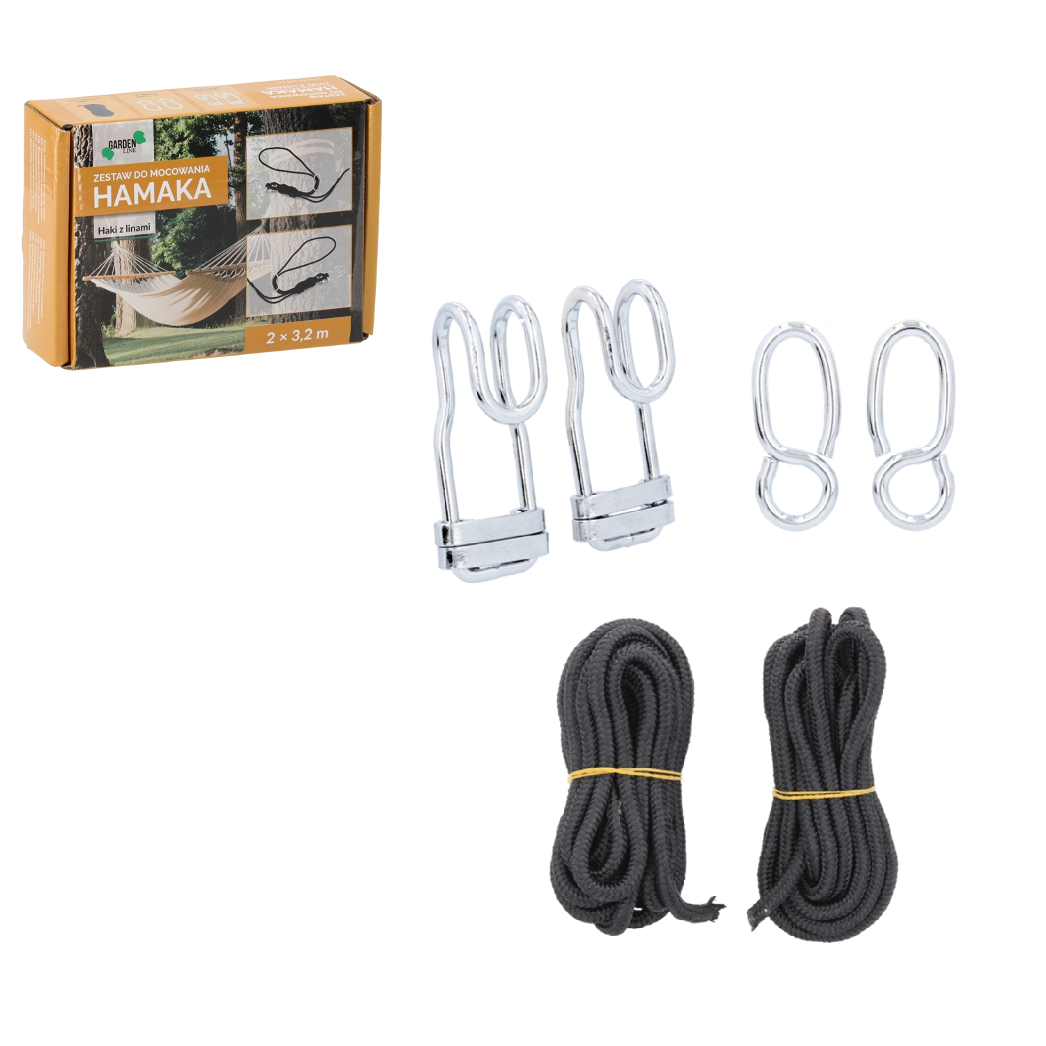Kit pratique pour une suspension rapide et sûre de votre hamac, à la maison comme en extérieur. Il comprend des cordes robustes et des crochets en acier inoxydable résistants à la corrosion, supporte une charge jusqu’à 200 kg et offre une installation facile sans complications inutiles.