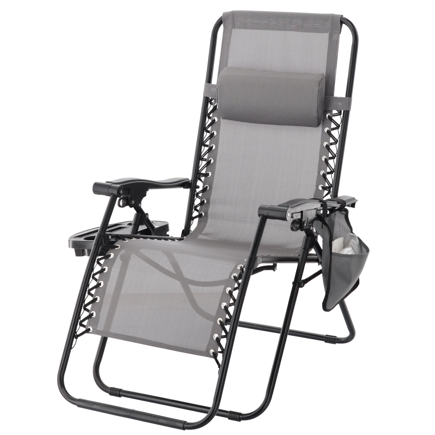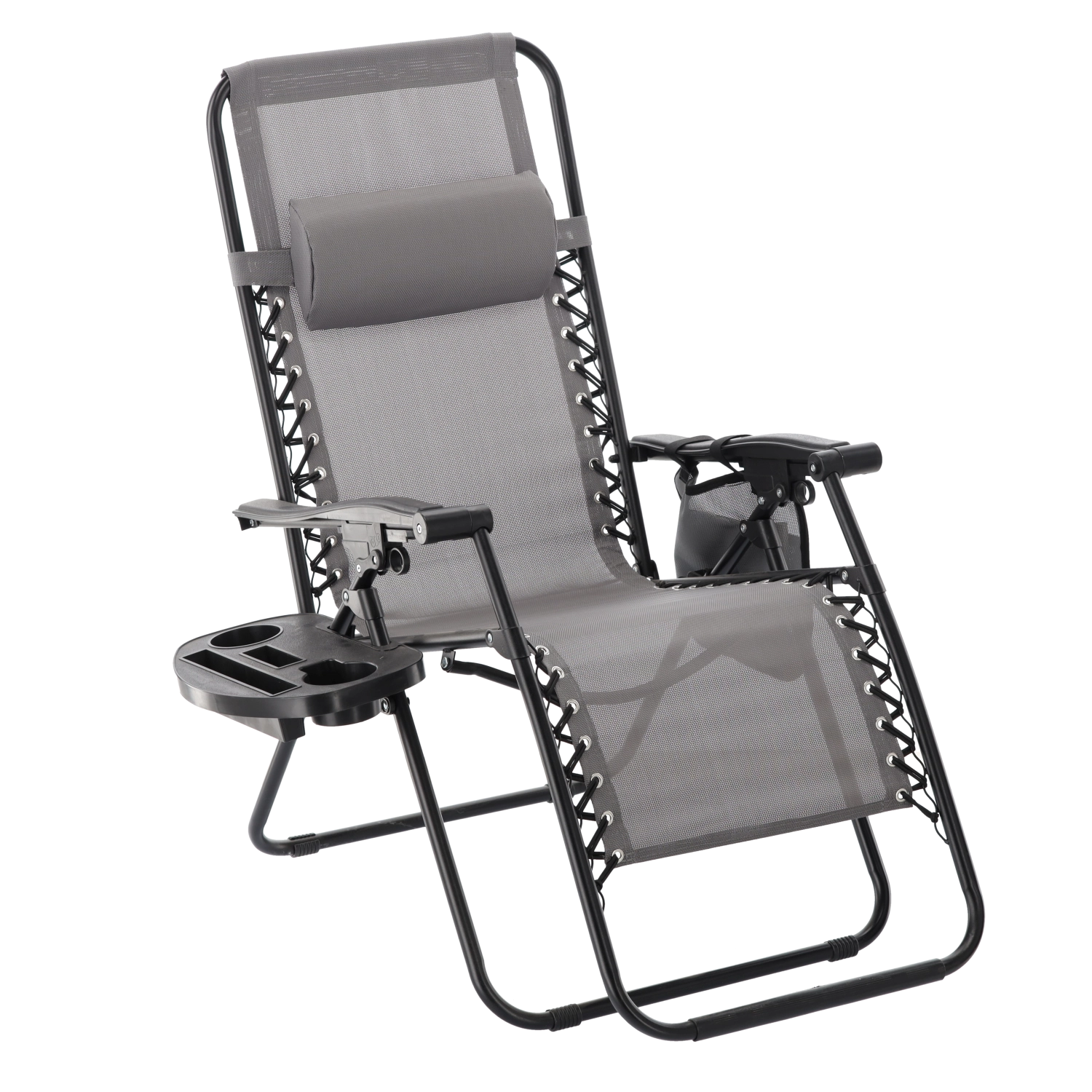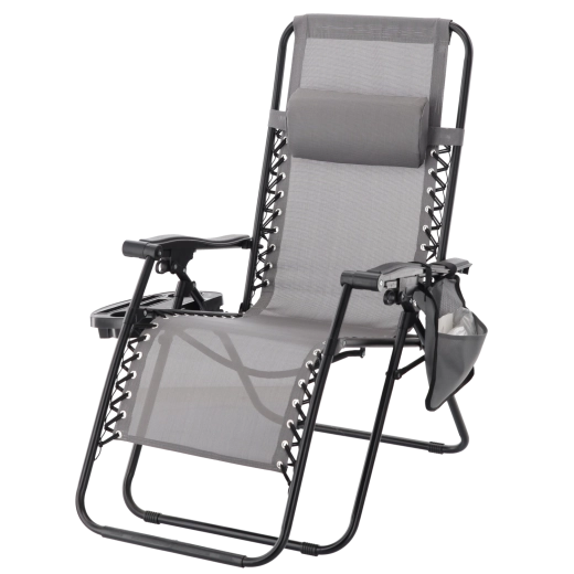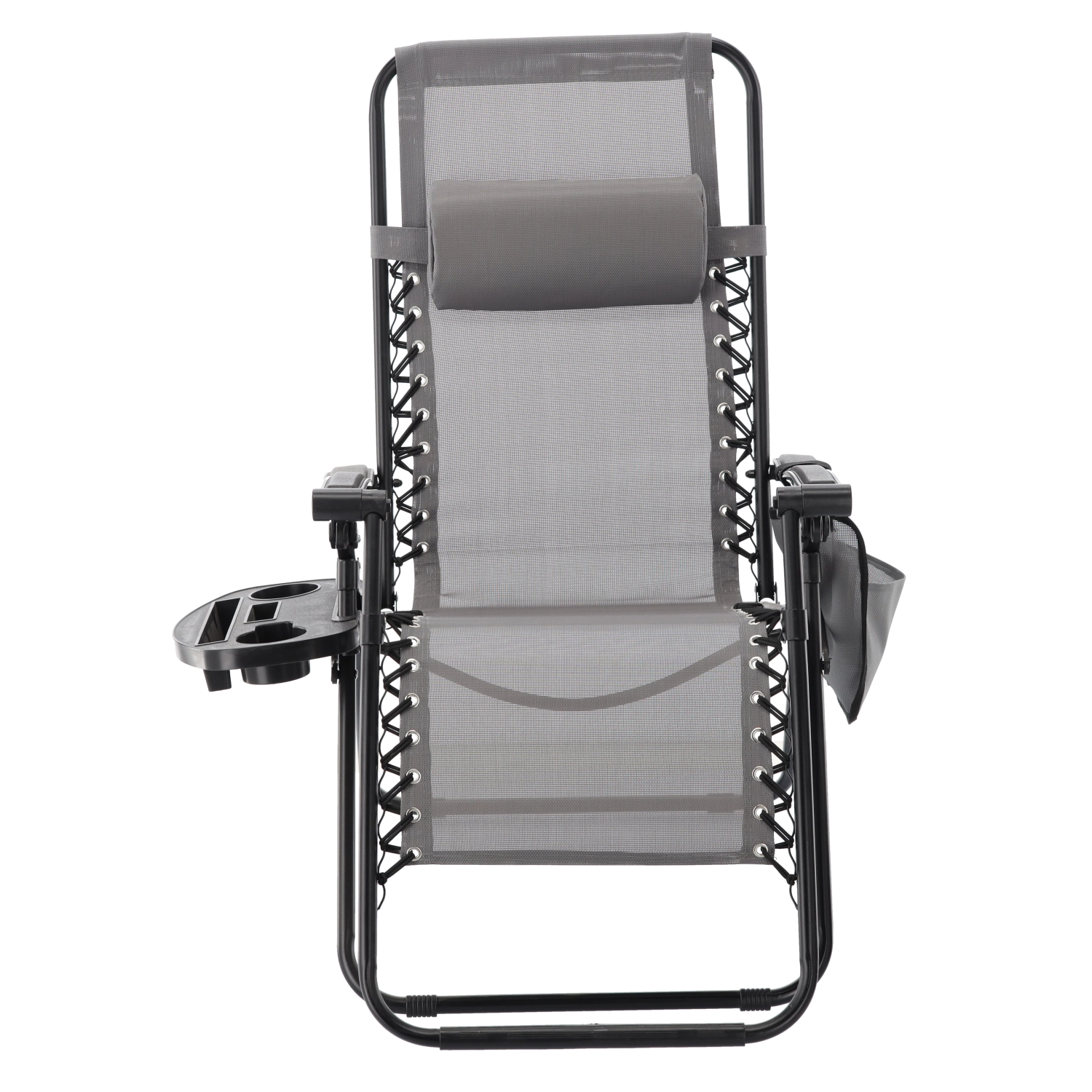 Profitez de moments de détente sur la terrasse ou au jardin avec cette chaise longue grise à quasi apesanteur. Elle offre une position de couchage réglable, un cale-nuque amovible, une pratique tablette latérale avec porte-boissons et une poche pour les essentiels. La maille respirante Textilene assure le confort même par forte chaleur et le cadre métallique robuste apporte stabilité et durabilité pour une utilisation extérieure quotidienne.