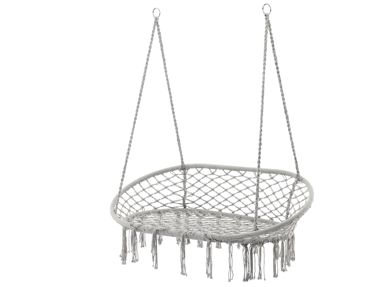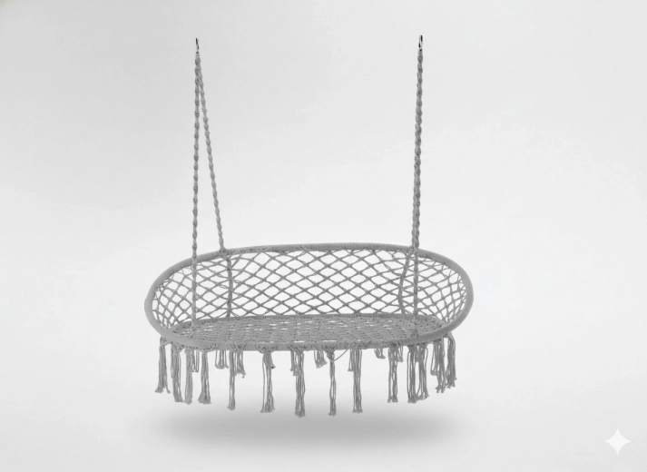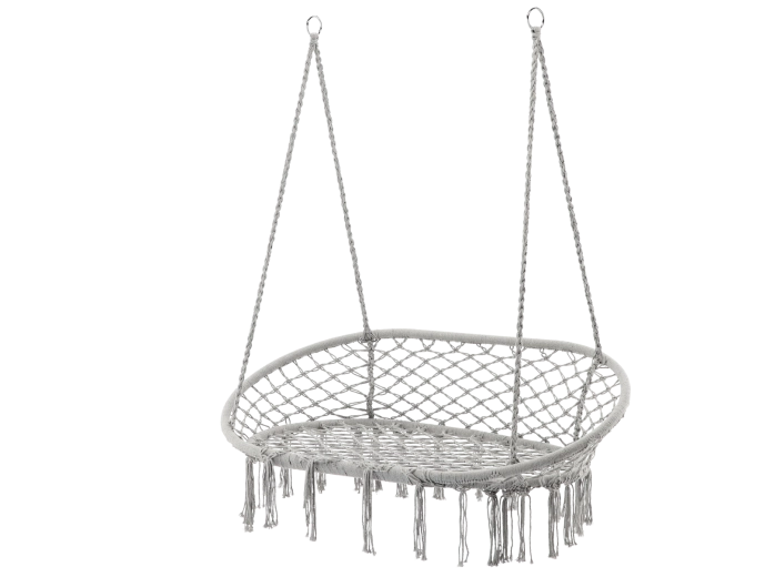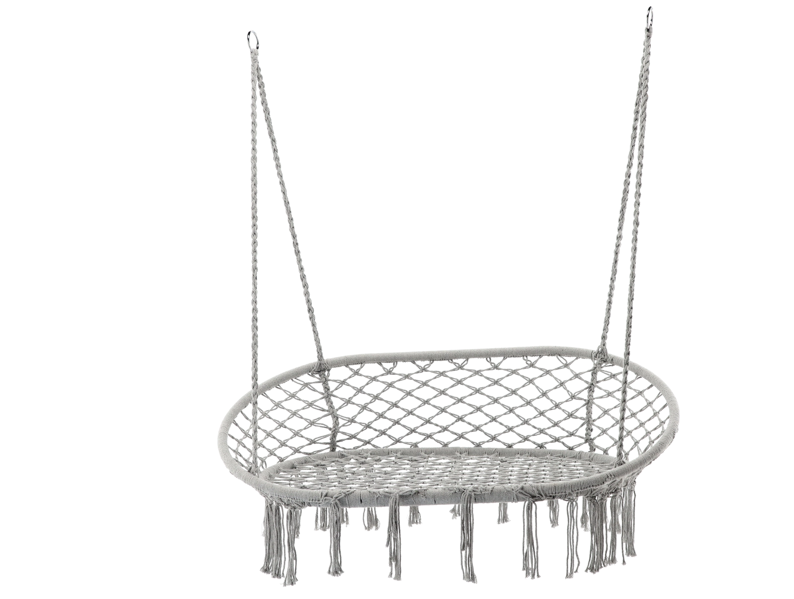 Offrez-vous un doux balancement et une relaxation à deux. Le siège spacieux de 110 × 62 cm et le tissu agréable en gris neutre créent un cocon idéal pour lire, boire un café ou se reposer après une journée chargée. Le cadre en acier revêtu par poudre assure solidité, stabilité et longue durée de vie.