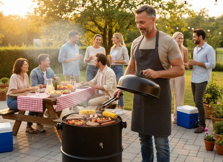 Profitez de vos rencontres estivales avec un assistant polyvalent : un grill multifonction 3 en 1 qui sert de barbecue, de fumoir et de brasero. Grâce à sa grande capacité, à ses cuvettes émaillées et à la régulation précise de la température avec thermomètre intégré, préparez des steaks juteux, des viandes subtilement fumées et des grillades conviviales en soirée, sans compromis.