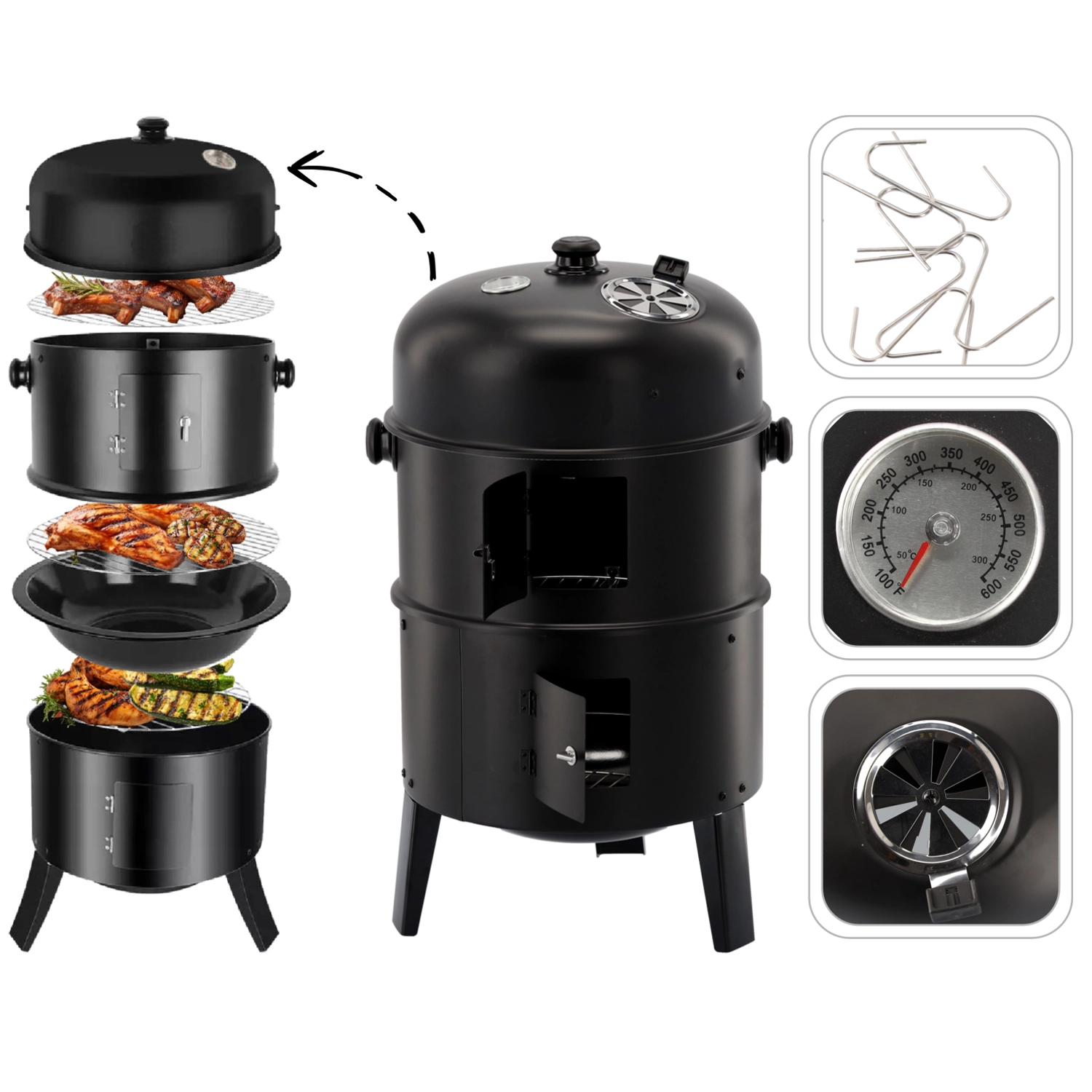 - Grill à charbon vertical / fumoir / brasero 3 en 1