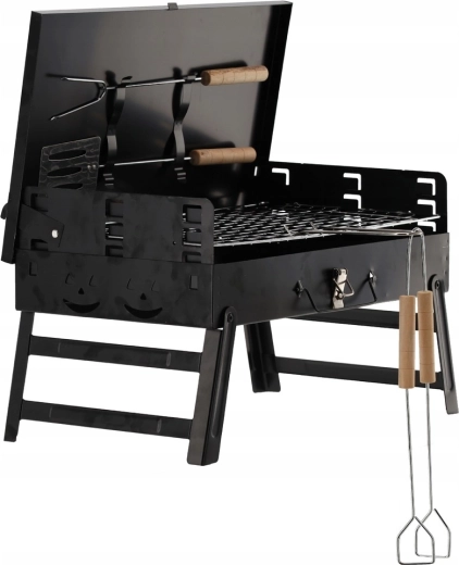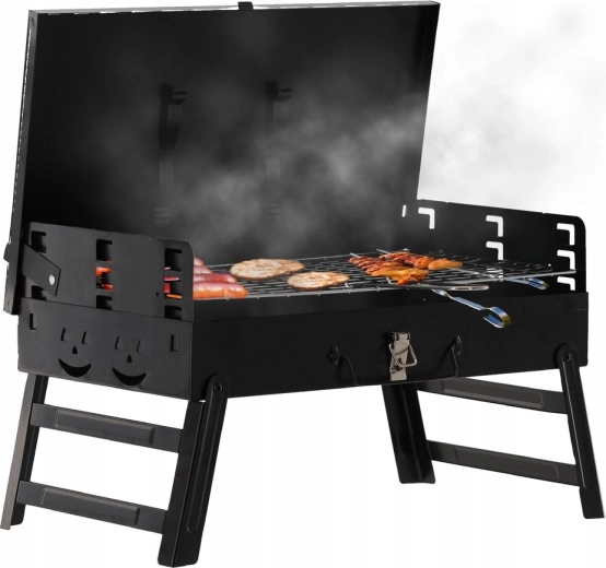 Barbecue à charbon de bois compact et portable au format pratique de valisette pour le camping, les pique-niques et le jardin. Grâce aux pieds pliables, au couvercle verrouillable et au set d’ustensiles intégré, griller partout devient confortable et sûr. Structure stable, montage rapide et transport facile font gagner de la place et du temps.