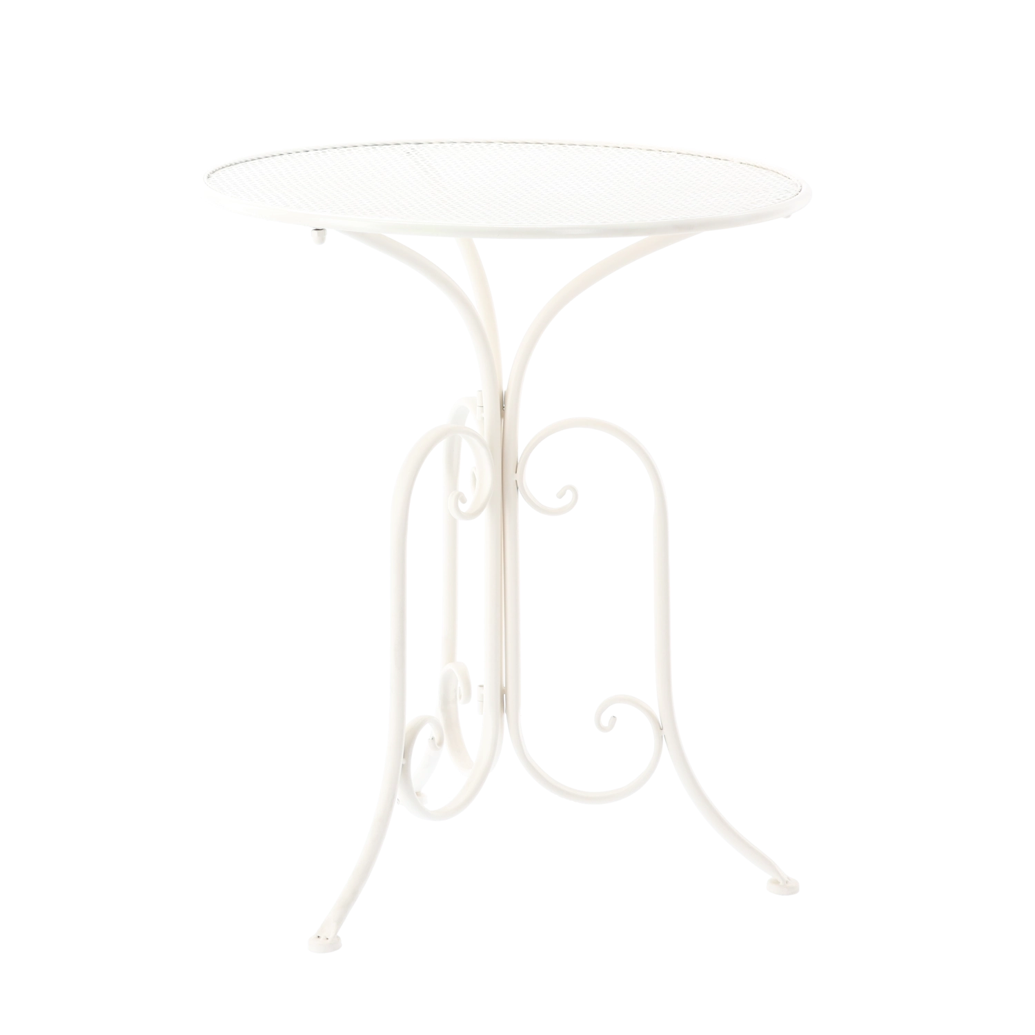 Élégant ensemble bistro en métal LINDA dans un blanc intemporel apportant un charme vintage au balcon, à la terrasse et au jardin. Sa structure tout métal stable, ses assises et son plateau perforés pour un drainage rapide ainsi que ses chaises pliantes faciles à ranger en font une solution pratique et stylée pour un tête‑à‑tête.