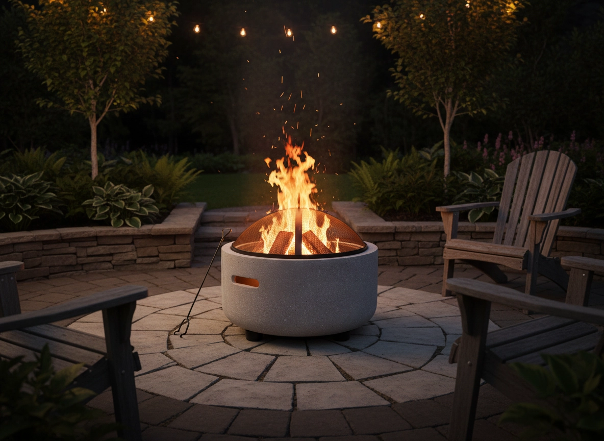 Profitez de l’atmosphère des flammes dansantes sur la terrasse ou au jardin. Ce brasero moderne avec cuve en MgO résistant, d’un gris discret, s’intègre parfaitement à tout extérieur et offre une utilisation stable et sûre. La coupole pare-étincelles en acier protège contre les projections et le tisonnier facilite la manipulation des bûches.
