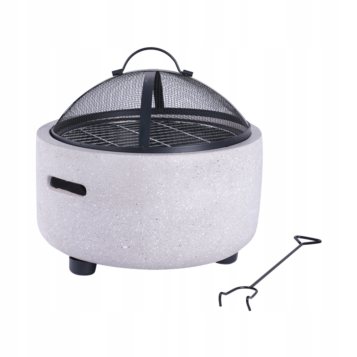 La coupole pare-étincelles et le tisonnier réduisent au minimum les projections d’étincelles et améliorent le confort d’utilisation. Les pieds stables et les poignées latérales facilitent le transport.