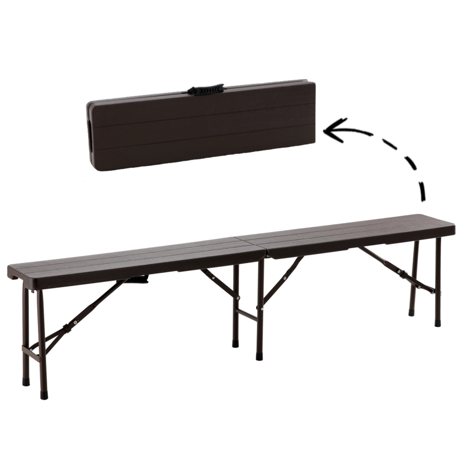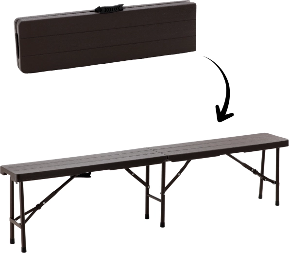 Banc pliant pratique et résistant de 180 cm offrant une assise confortable pour plusieurs personnes. Grâce à sa structure en acier stable, ses embouts antidérapants et sa surface HDPE facile à nettoyer au décor bois, il est idéal pour le jardin, les pique-niques, le camping et les événements en plein air. Son design pliable avec poignée assure un transport aisé et un gain de place.