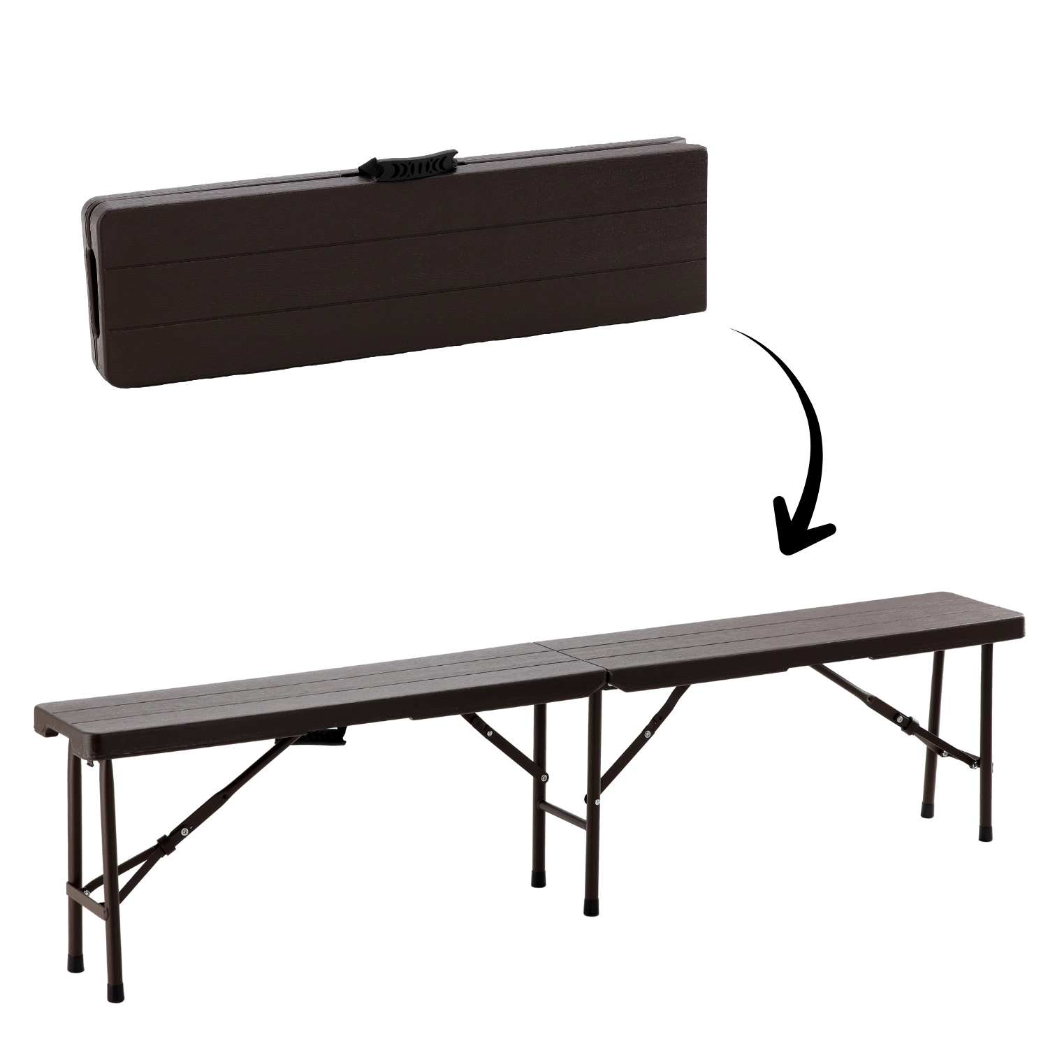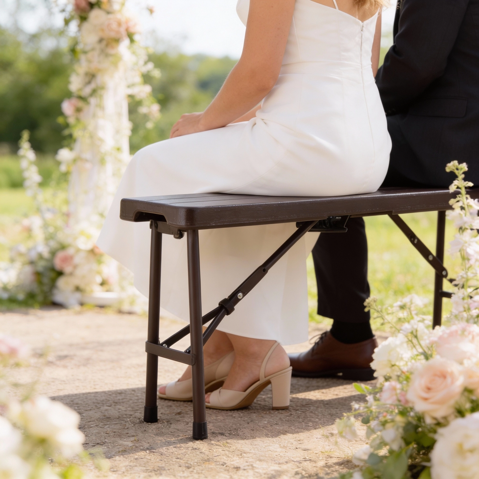 Vous cherchez une assise polyvalente pour l’extérieur comme l’intérieur ? Ce banc pliant marron 180 × 25 × 43 cm allie confort, mobilité et durabilité. Son assise en HDPE au décor bois est robuste, facile à nettoyer et élégante dans tout environnement – d’une fête au jardin à une réception de mariage.