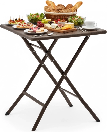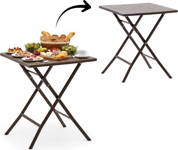 Pratique, la table de camping pliante 61,5 × 61,5 × 73 cm allie légèreté et grande stabilité. Sa surface marron à décor bois s’harmonise aisément avec votre mobilier d’extérieur et, grâce aux pieds pliants, elle se range en un instant même dans les petits espaces.