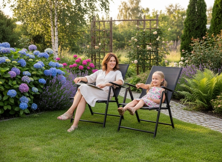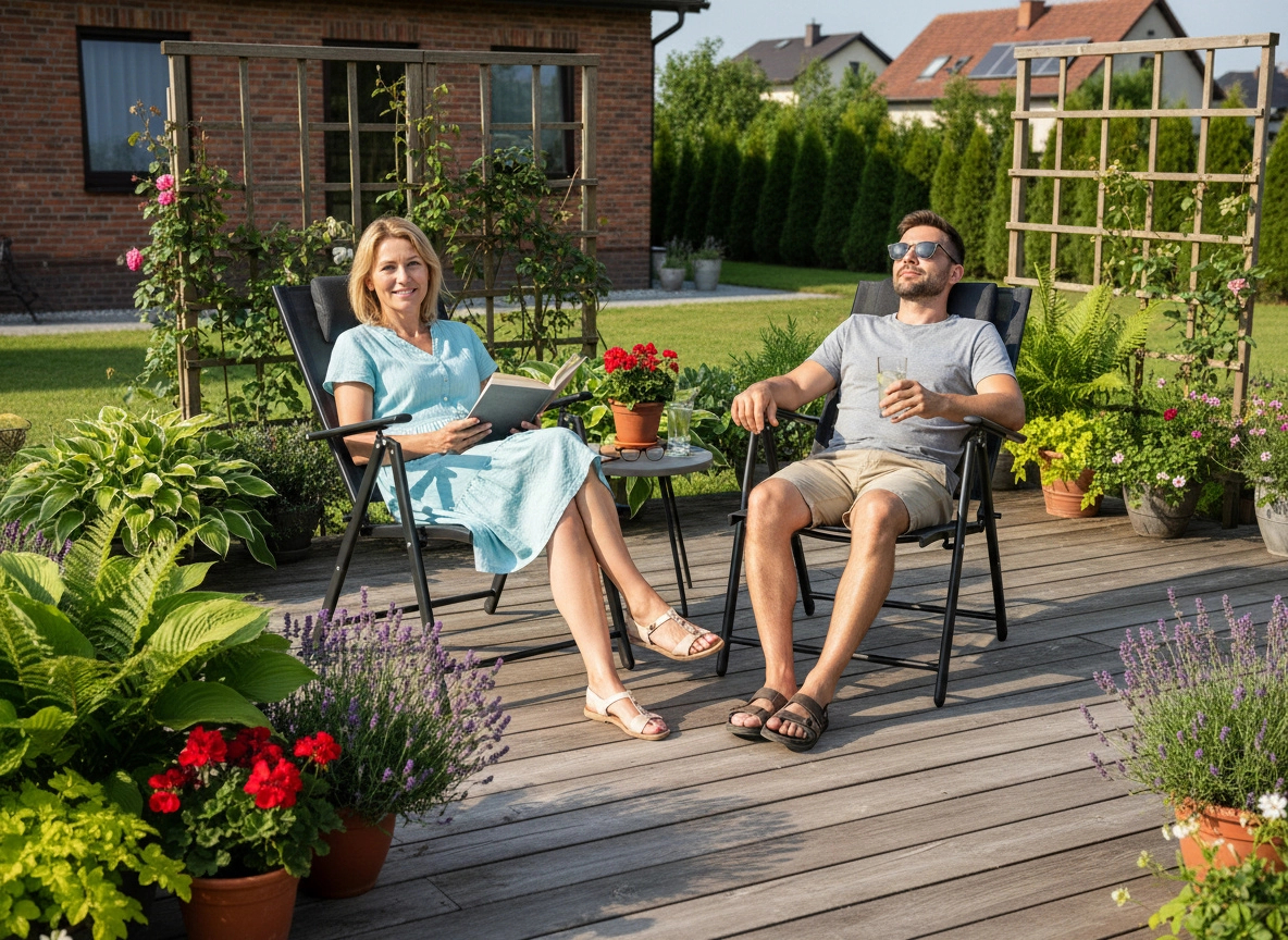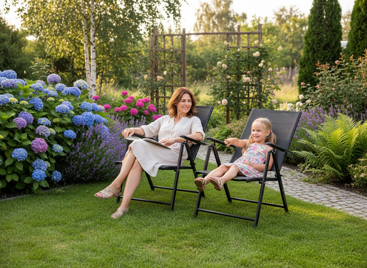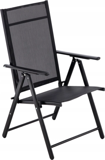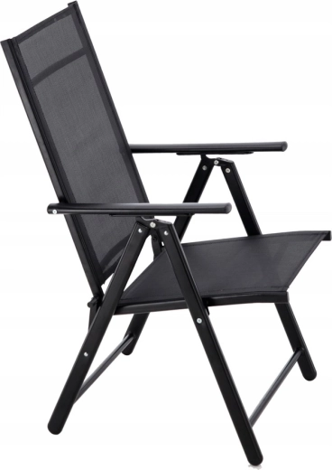 Ce fauteuil pliant noir allie design moderne et praticité pour un usage quotidien au jardin, sur la terrasse ou le balcon. Sa structure en acier avec peinture époxy résiste aux intempéries, tandis que la maille textile est agréable, à séchage rapide et facile à entretenir.