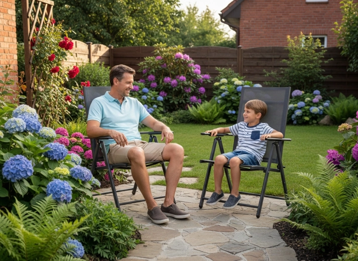 Cette chaise de jardin pliable combine un cadre en acier robuste avec un textile respirant qui sèche vite et reste agréable même par forte chaleur. Grâce aux 7 positions du dossier, vous ajustez facilement la posture idéale – du repas à la détente à l’ombre.