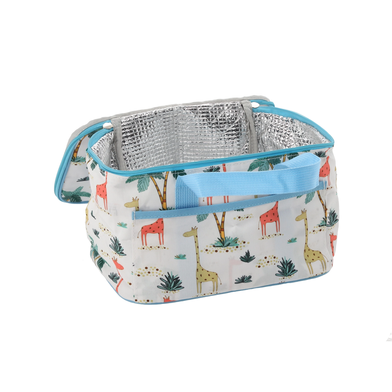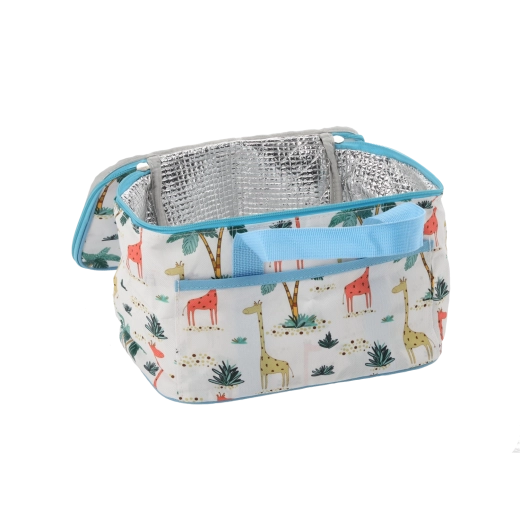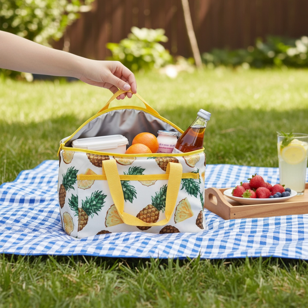 La feuille d’aluminium intérieure réfléchit la température et, associée à la mousse PE, maintient le contenu froid ou chaud plus longtemps. Le sac dispose d’une fermeture zippée, d’une poche avant pratique et de poignées robustes pour un transport confortable au pique-nique, au bureau ou en excursion.